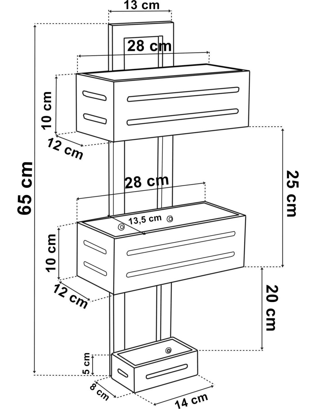 Manila to model który zastosowanie znajdzie w łazience, kabinie prysznicowej, gdzie umożliwi Ci szybkie kosmetyków czy gąbek a także szybkie sięgnięcie po nie. Dzięki temu, że każda z półek posiada wysokie krawędzie, nie ma ryzyka, by coś z nich spadło. Co więcej, liczne otwory umożliwiają odpływ wody. Półka ta sprawdzi się także w innych miejscach jak np. kuchnia czy pokój dziecka - gdzie posłuży do segregacji przedmiotów np. powieszona nad lub obok biurka.