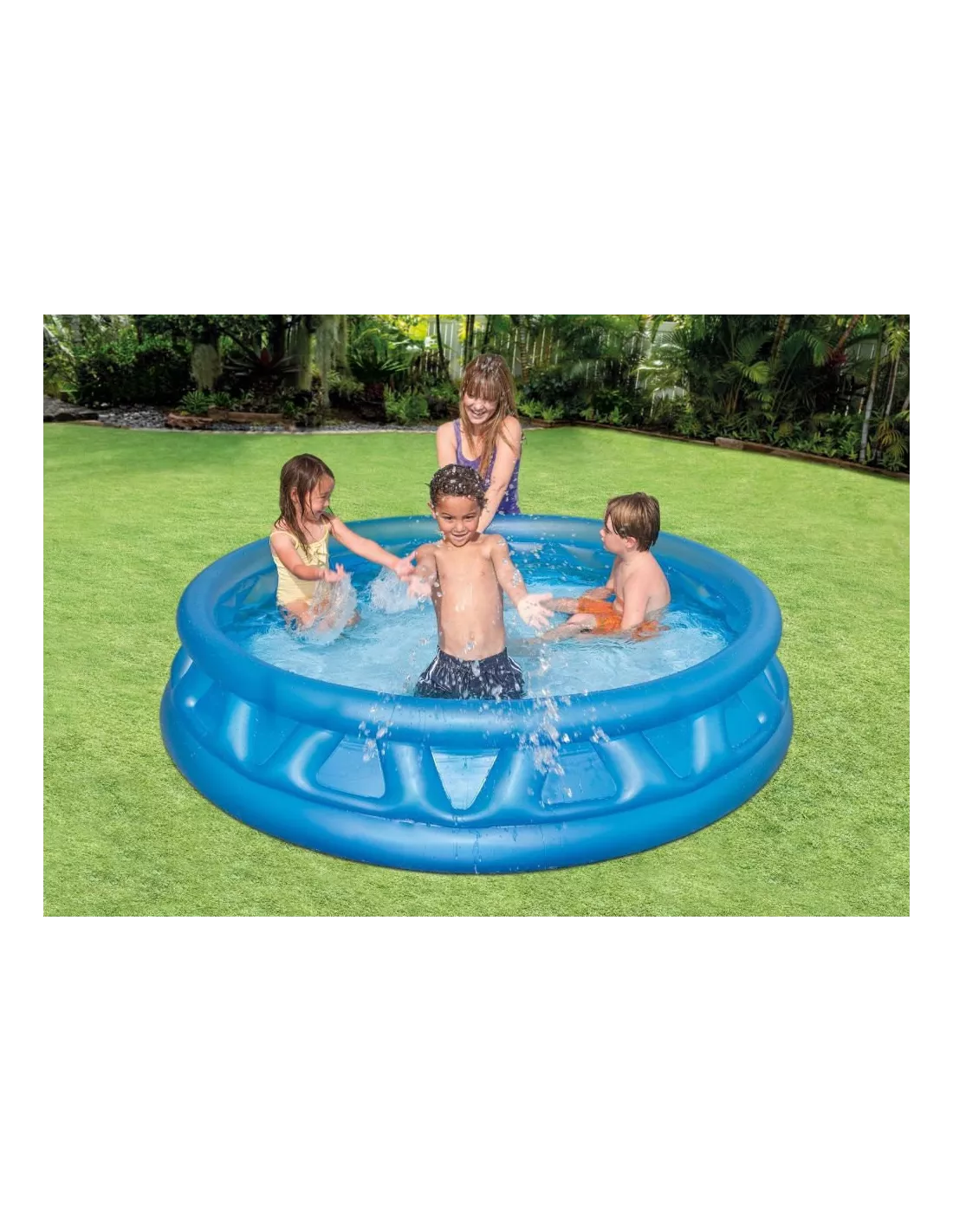 Basen ogrodowy to jedna z pozycji obowiązkowych w ogrodzie w czasie letnim. Gdy z nieba leje się żar, chętnie sięgamy po wszystko, co może przynieść odrobinę chłodu. Basen dmuchany zapewni dodatkowo także frajdę i dużo dobrej zabawy! Dzięki temu, że posiada 3 osobne komory do pompowania - raz nadmuchany służy przez wiele dni i jest stabilny. Wytrzymałe tworzywo, z jakiego jest wykonany zapewnia bezpieczeństwo użytkowana, bez obaw o przedarcia.