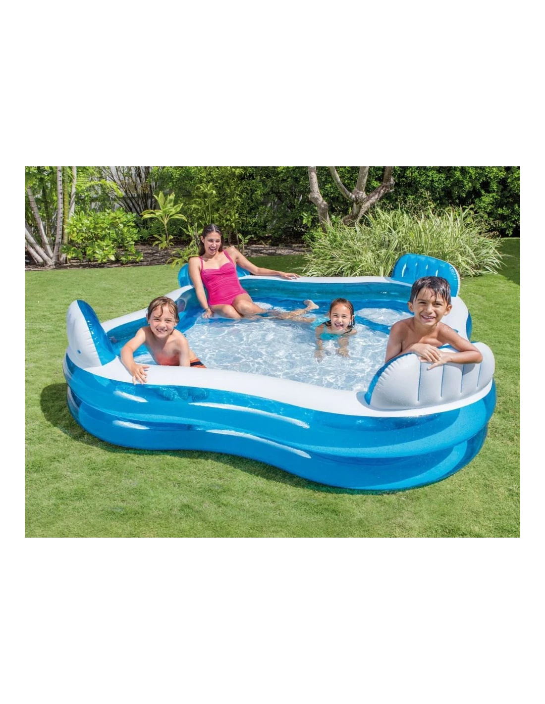 Basen ogrodowy to jedna z pozycji obowiązkowych w ogrodzie w czasie letnim. Gdy z nieba leje się żar, chętnie sięgamy po wszystko, co może przynieść odrobinę chłodu. Basen dmuchany Jaccuzi zapewni dodatkowo także frajdę i dużo dobrej zabawy! Wyróżnia go fakt, że posiada 4 siedziska z oparciami, niczym jaccuzi, na których zmieszczą się zarówno osoby dorosłe jak i dzieci. Jest to, więc świetna okazja do wypoczynku dla całej rodziny. Dodatkowo w basenie ogrodowym Jaccuzi mieszczą się 2 uchwyty, w które włożysz ulubione zimne napoje. Dzięki temu, że posiada dwie osobne komory do pompowania - raz nadmuchany służy przez wiele dni. Wytrzymałe tworzywo, z jakiego jest wykonany zapewnia bezpieczeństwo użytkowana, bez obaw o przedarcia.