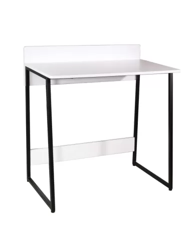 CT-1826 to klasyczne biurko w nieco unowocześnionej wersji z poprzeczką, na metalowych płozach. Blat o wymiarze 80 cm x 50 cm jest jednocześnie funkcjonalny i praktyczny, biurko wymaga jedynie niewielkiej przestrzeni. Solidny metalowy stelaż na dwóch wspornikach typu płoza w kolorze czarnym, świetnie komponuje się z bielą blatu. To monochromatyczne biurko idealnie sprawdzi się we wszystkich nowoczesnych wnętrzach. Biurko służyć może także jako toaletka, konsola. Prosty design nawiązuje do minimalizmu, który wpasuje się w wiele przestrzeni, czy będzie to domowy gabinet czy biuro w pracy.