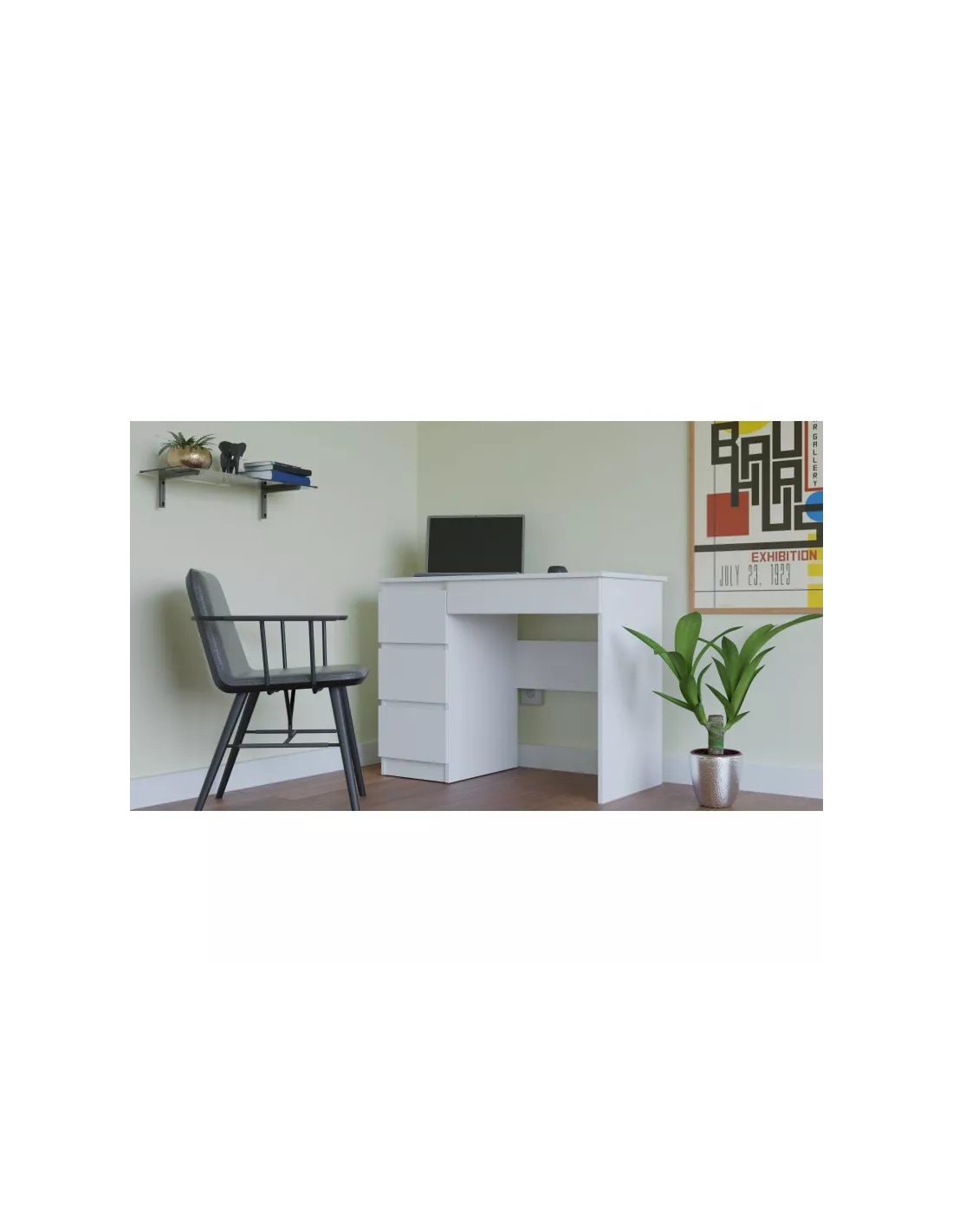 Biurko Mijas zostało zaprojektowane tak, by korzystać przy nim zarówno z laptopa jak i z komputera. Biurko posiada 3 pojemne szuflady, a brak uchwytów (jak to ma miejsce w tradycyjnych biurkach) dodatkowo wpływa na nowoczesność jego designu. Biurko wyposażone jest także w wysuwaną szufladę pod blatem. Możesz także wybrać stronę, po której wolisz mieć szuflady, biurko występuje zarówno w wersji lewo jak i prawo-stronnej.