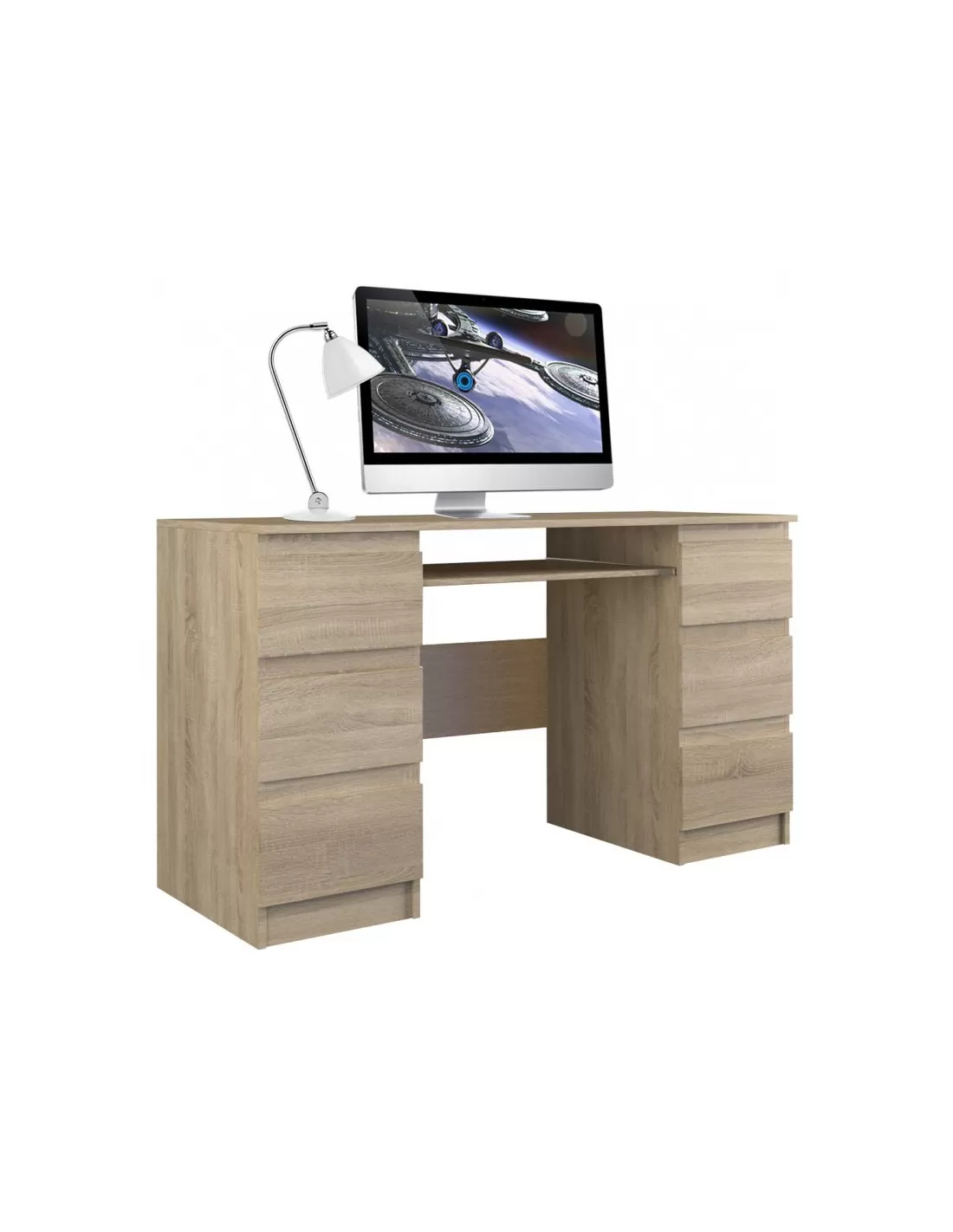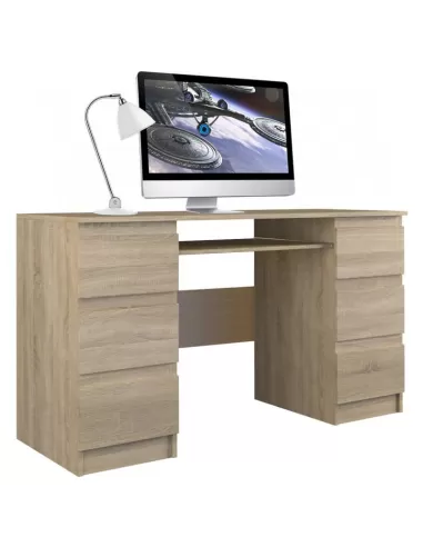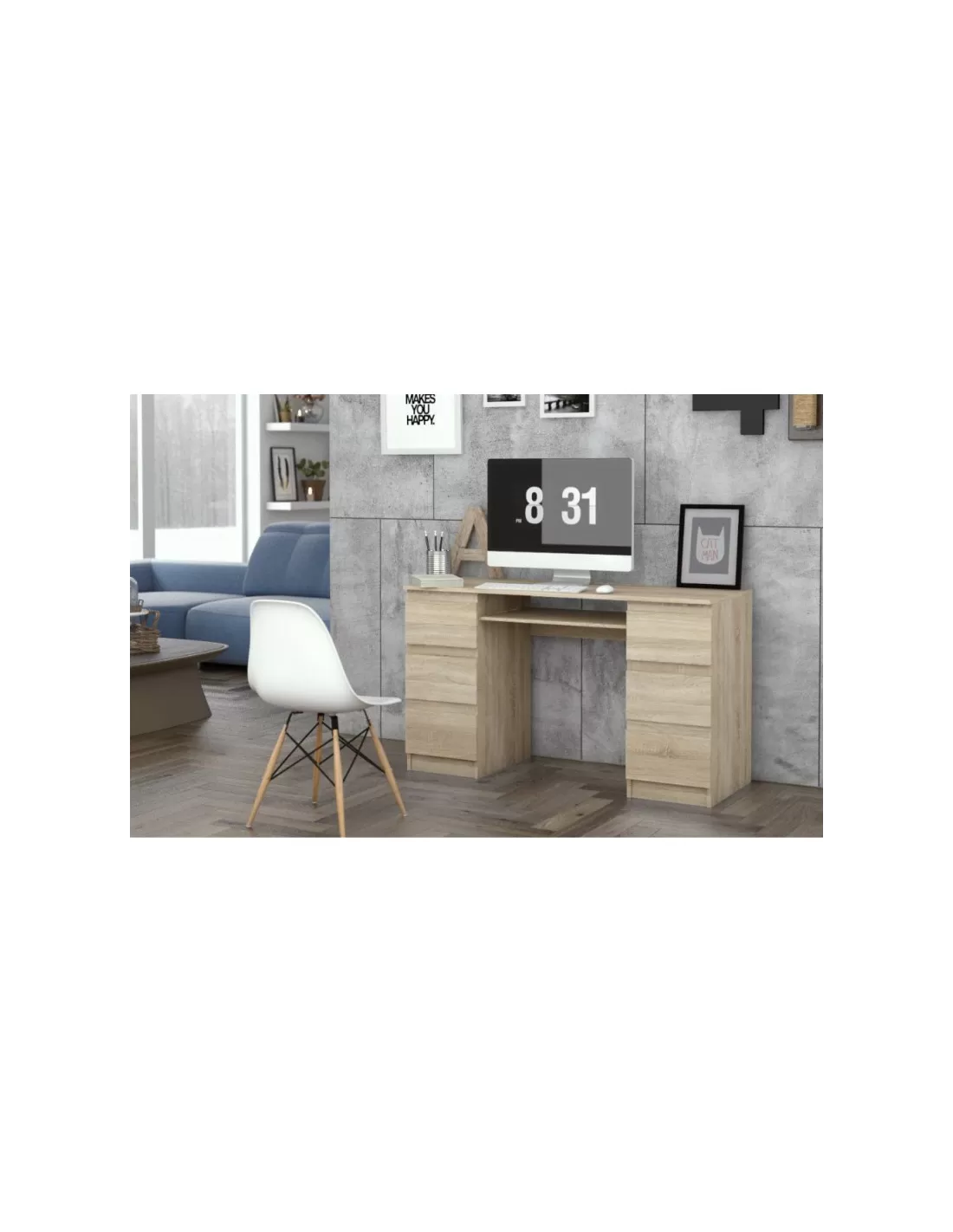 Biurko komputerowe Kuba to idealne rozwiązanie dla każdego domowego gabinetu, pokoju dziecka czy biura. Nowoczesny design i filigranowe gabaryty pozwalają umieścić je niemalże w każdym pomieszczeniu, nawet tym z ograniczoną przestrzenią. Biurko posiada 6 pojemnych szuflad, a brak uchwytów ( jak to ma miejsce w tradycyjnych biurkach) dodatkowo wpływa na nowoczesność jego designu. Estetykę wykonania dostrzec można również w gładkich bokach, pozbawionych mało eleganckich zaślepek. Biurko Kuba zostało zaprojektowane tak, by korzystać przy nim zarówno z laptopa jak i z komputera - dodatkowo zamontowano wysuwaną półkę na klawiaturę. Mebel ten został wykonany z wysokogatunkowej płyty laminowanej 16 mm a boki zabezpieczono trwałym tworzywem PCV - co gwarantuje bezpieczne użytkowanie przez lata. Zamów już dzisiaj i zyskaj piękny mebel, który umożliwi Ci przyjemną pracę.