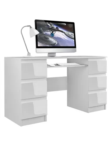 BIURKO KOMPUTEROWE KUBA POŁYSK 6 SZUFLAD BIAŁE