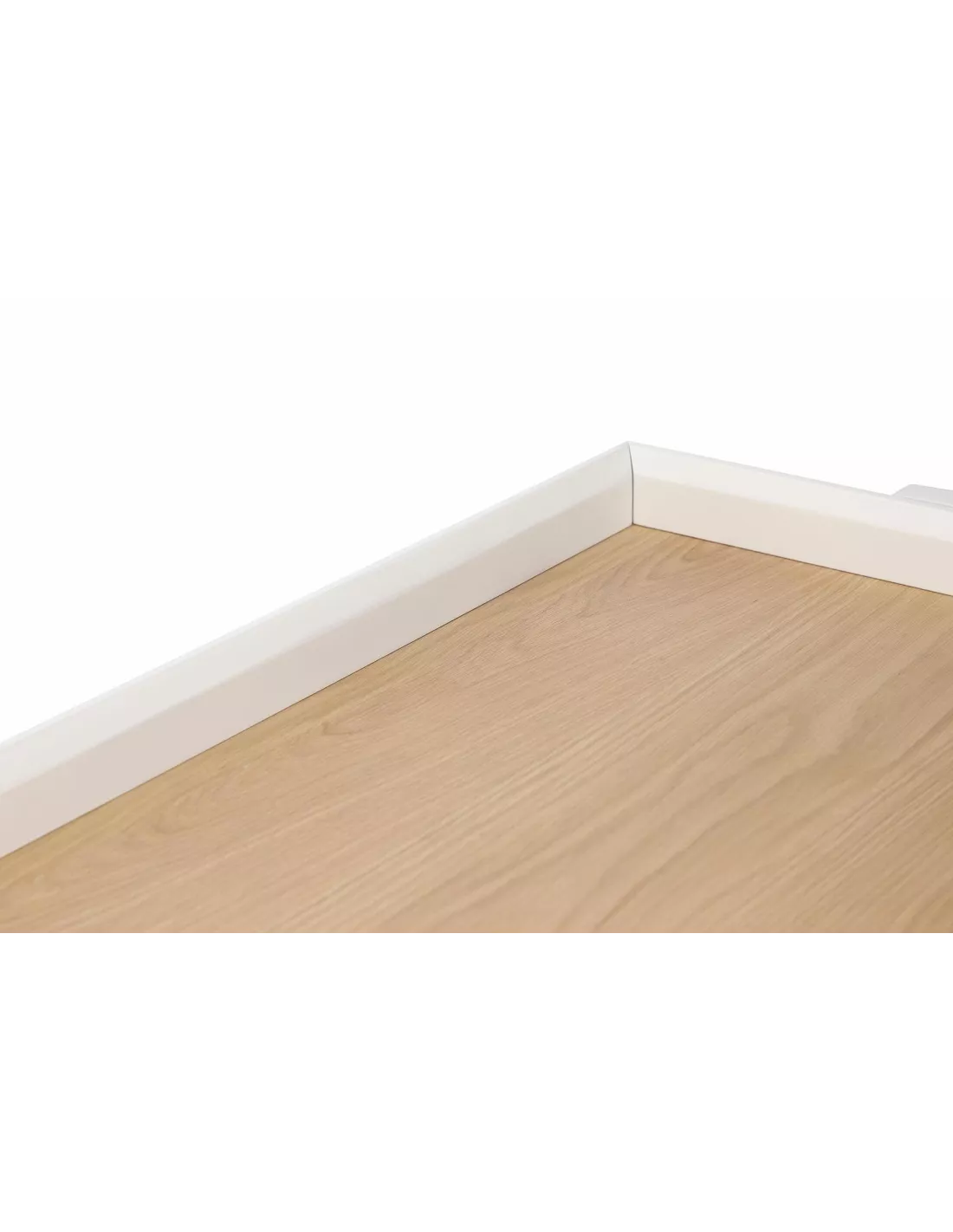 Biurko Malmo posiada blat z wysokimi krawędziami, dzięki czemu nic niekontrolowanie z niego nie spadnie. Został on zabezpieczony warstwą lakieru, która chroni przed przetarciami i porysowaniem, dzięki czemu biurko wciąż wyglądać będzie jak nowe. Wzór drewna - stanowi jego doskonałą imitację z widocznym usłojeniem i przebiciami. Doskonale komponuje się z bielą drewnianego stelaża.