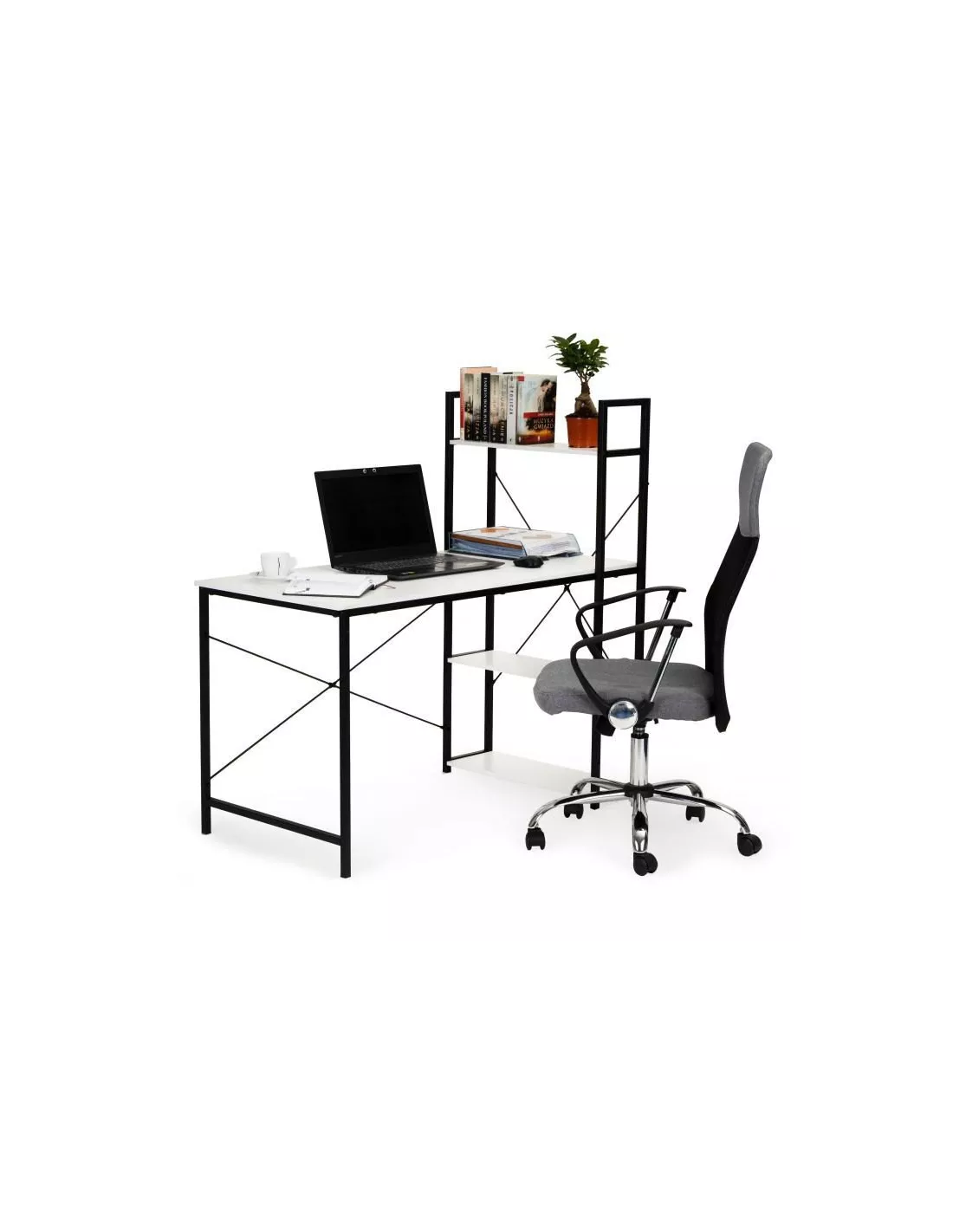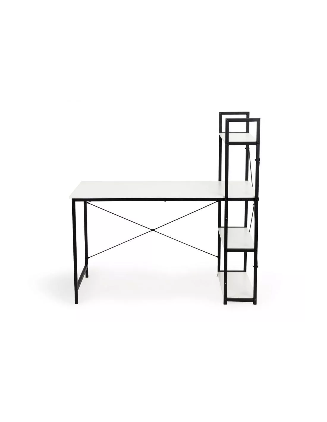 Przedstawiamy nowoczesne biurko o loftowej stylistyce, w której prostota spotyka się z funkcjonalnością. Estetyczny biały blat spotyka się tutaj z czernią stelaża. Industrialnego klimatu i funkcjonalności dodają 4 boczne otwarte półki z metalowymi poprzeczkami. Boczny regał będzie idealnym miejscem na przechowywanie segregatorów i wszystkich innych artykułów biurowych.
