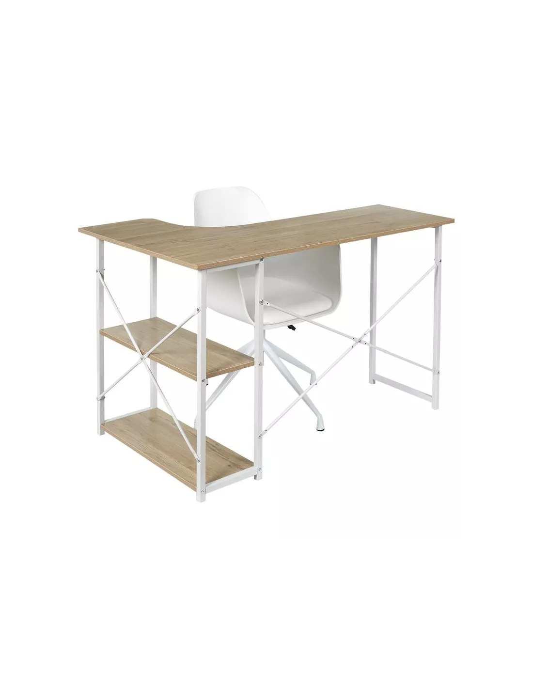 Biurko komputerowe z regałem Janice to w pełni funkcjonalne biurko o prostej, klasycznej budowie, dzięki której z powodzeniem odnajdzie się w wielu pomieszczeniach. Biurko wykonane z wysokiej jakości materiałów. Płyta MDF w kolorze jasnego dębu z ochronną powłoką zapewnia meblowi długowieczność. Metalowa konstrukcja biurka wraz z krzyżakami nie tylko nadaje mu surowego loftowegop designu, ale także wpływa na stabilność i trwałość bryły.