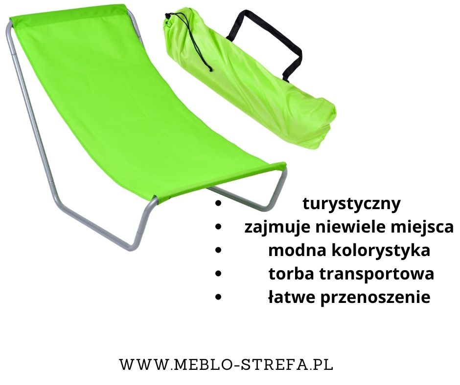 Świetny wybór, jeśli do plaży daleko albo miejsca w bagażniku niewiele. Leżak plażowy, który złożyć możemy do niewielkiej torby transportowej, szybko i łatwo przeniesiemy z miejsca na miejsce. Ciekawe kolory poszycia, podobnie jak niska cena stanowią jego kolejne plusy. Idealny leżak dla minimalistów oraz osób ceniących sobie praktyczność.
