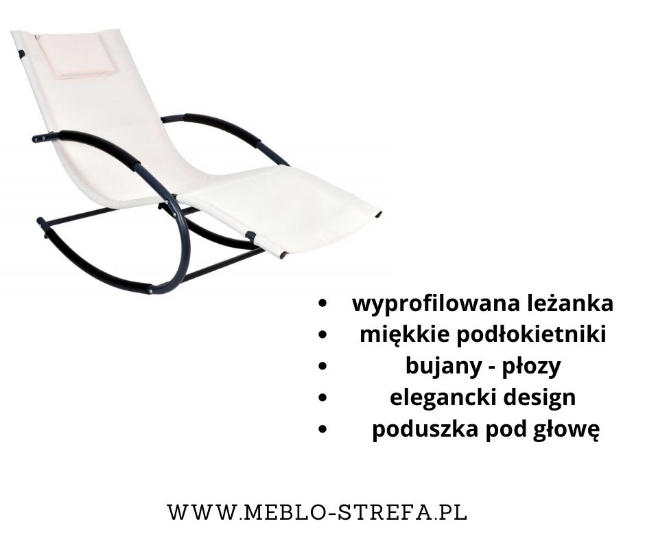 Świetna opcja dla wszystkich fanatyków designu. Specjalnie wyprofilowana powierzchnia leżenia idealnie koresponduje z opływowymi kształtami płóz, które swobodnie przechodzą w miękkie podłokietniki z nakładkami. To właśnie możliwość delikatnego bujania wyróżnia ten leżak bujany spośród innych. Idealny wybór jeśli poszukujesz mody leżak na taras lub patio.