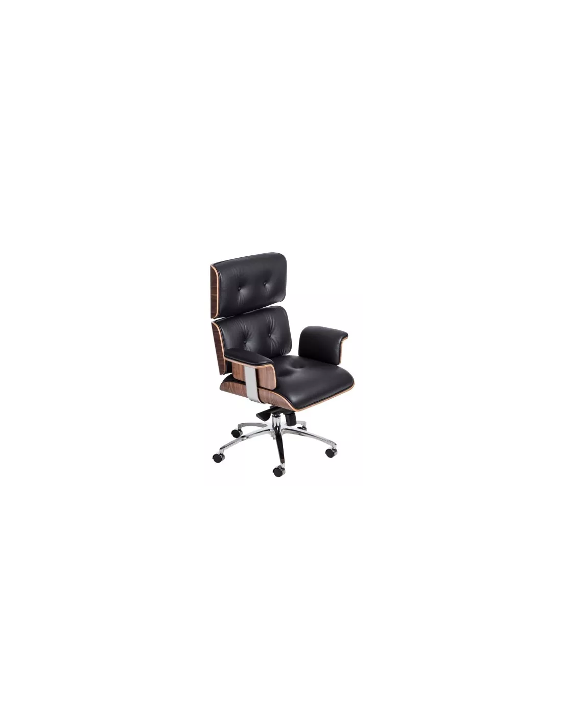 FOTEL BIUROWY VIP SKÓRA NATURALNA CZARNY + ORZECH