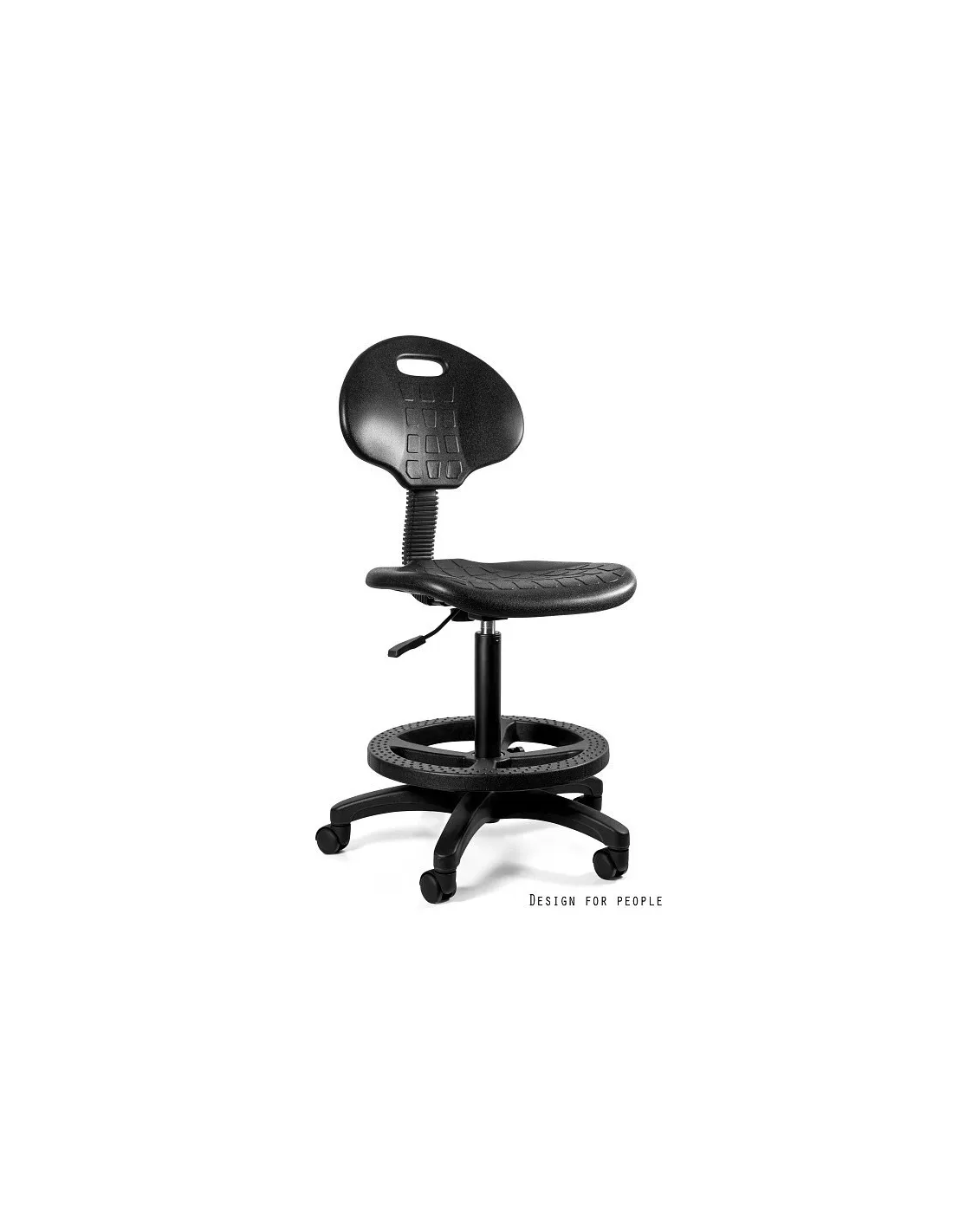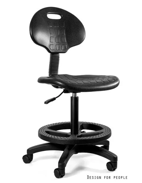 Poliuretan, z jakiego wykonane jest siedzisko i oparcie to antypoślizgowe, łatwo-zmywalne tworzywo, cechujące się także trwałością i odpornością na uszkodzenia. Dzięki oparciu praca laboratoryjna stanie się bardziej komfortowa a uchwyt w oparciu umożliwi łatwiejsze przesuwanie mebla. Halcon bez problemu nadaje się do dezynfekcji i czyszczenia. Dzięki temu, że siedzisko jest obrotowe a podstawa na kółkach - można bez wstawania przemieszczać się po pomieszczeniu, co jest także bardzo wygodne i praktyczne. Regulowana wysokość siedziska, pozwala dopasować taboret zarówno do potrzeb lekarza, laboranta jak i pacjenta. Podnóżek z antypoślizgowymi wypustkami, przyda się podczas dłuższej pracy i dla poczucia komfortu.