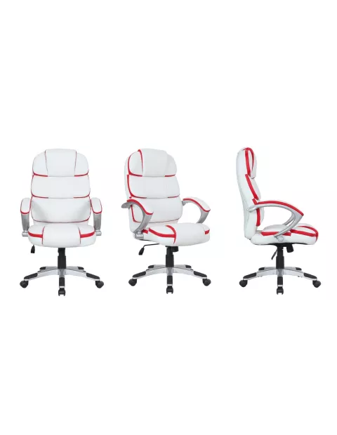 Fotel obrotowy Elegance Fan to świetna propozycja do każdego biura czy domowego gabinetu. Idealnie sprawdzi się jako fotel prezesa czy fotel managerski, łącząc w sobie cechy modnego designu i komfortu użytkowania. Miękkie siedzisko, oparcie z zagłówkiem oraz podłokietniki, uprzyjemnią nawet wielogodzinną pracę za biurkiem. Elegance Fan posiada piękną tapicerkę z mocnej i trwałej eko-skóry z ozdobnymi przeszyciami i wstawkami w innym kolorze. Cały design przywodzi na myśl gabinet prezesa ale świetnie pasuje także do wnętrz domowych. Wyposażony w regulację wysokości, siły odchyłu oparcia, mechanizm kołyskowy - pozwala dopasować go idealnie do własnych potrzeb.
