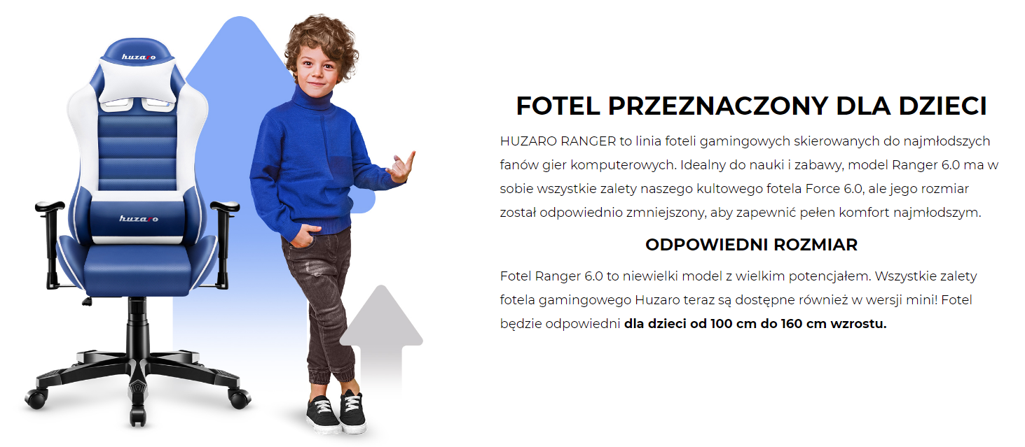 Fotel obrotowy gamingowy Ranger 6.0 stylizowany na sportowy fotel samochodowy to idealna propozycja dla każdego małego gracza oraz nastolatka. Swoim designem idealnie wpisze się w każde nowoczesne, modne wnętrze jak pokój młodzieżowy lub dziecięcy. Must have każdego chłopca i pilnego ucznia!