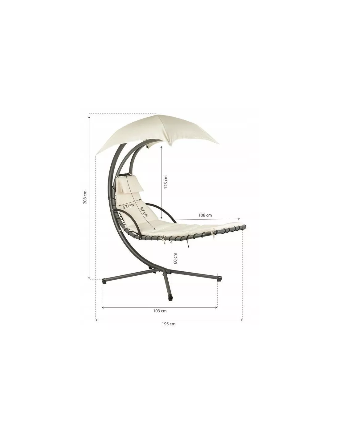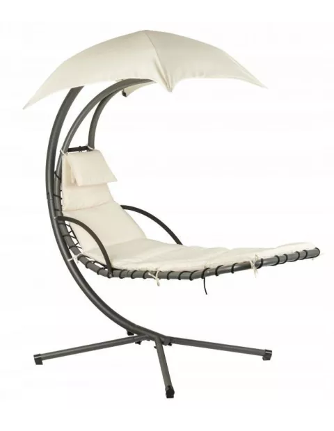 Marzysz o błogich chwilach, spędzanych w zaciszu domowego ogrodu? A może zastanawiasz się jak modnie zaaranżować przestrzeń na trasie? Koniecznie zwróć uwagę na bujany fotel wiszący Hamak. Poza tym, że posiada piękny, nowoczesny design i świetnie się prezentuje - ten ogrodowy fotel wiszący jest w 100% odporny na działanie warunków atmosferycznych! Solidna metalowa rama na krzyżaku - daje możliwość swobodnego bujania się, podczas leżenia na wygodnej, długiej leżance. Dodatkowo zamontowano w niej wygodne podłokietniki oraz zagłówek w formie poduszki pod głowę. Materiał zastosowany do jej tapicerowania to wodoodporny poliester. Nie wchłania wilgoci ani deszczu - nie musisz więc chować go za każdym razem ani czekać, aż wyschnie. A gdy słońca będzie dość - skryj się pod parasolem, zamontowanym na szczycie.