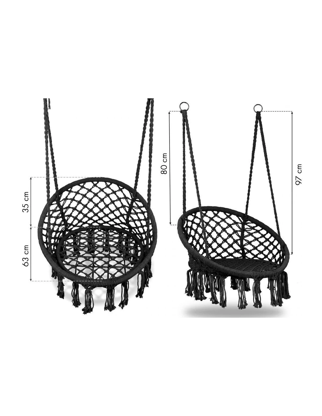 WISZĄCY FOTEL HUŚTAWKA INDIANKA (KREMOWY, SZARY, CZARNY)