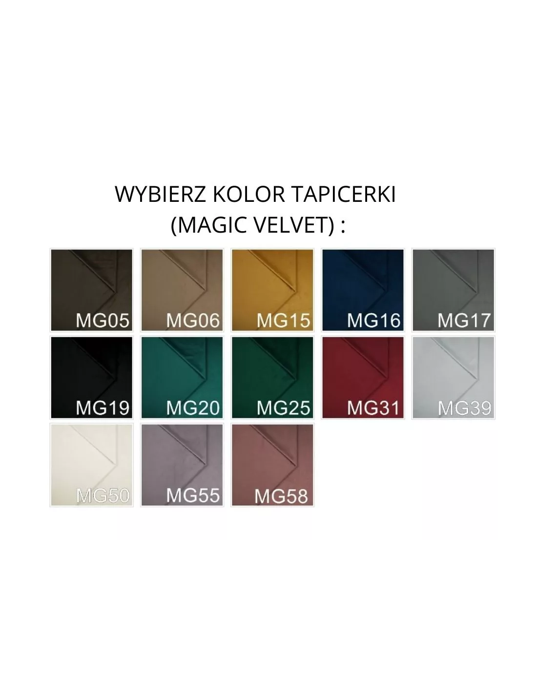Tkanina użyta do tapicerowania krzesła to Magic Velvet - jest to tkanina najwyższej jakości o wzmocnionej odporności na przetarcia i zarysowania i mechacenie. Co więcej, ograniczona zdolność wchłaniania przez nią cieczy sprawia, że obejdzie się bez plam. Powierzchnia "odpycha" płyny, nie pozwalając na ich wsiąknięcie. Ten specyficzny rodzaj velvetu jest także odporny na płowienie pod wpływem światła. Charakteryzuje się także ciekawym efektem cieniowania - gęste runo pod wpływem dotyku tworzy ciekawe wzory.