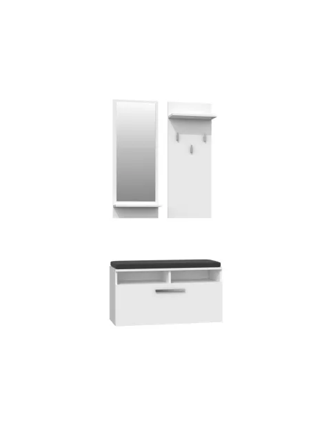 Garderoba Riva do przedpokoju to wielofunkcyjny mebel utrzymany w ciekawej kolorystyce, który pozwala na uzyskanie nowoczesnego, minimalistycznego akcentu w przedpokoju. Dzięki przemyślanej konstrukcji, zestaw pozwala na równoczesne korzystanie z lustra, szafki na buty i wieszaka. Wszystkie elementy utrzymane są w podobnej stylistyce, dzięki czemu mebel zyskuje na spójności i funkcjonalności. Garderoba Riva wykonana została przez polskiego producenta z najwyższej jakości materiałów. Materiał, z jakiego powstała to płyta laminowana o grubości, aż 16 mm, obrzeża dodatkowo wykończone zostały tworzywem PCV, które charakteryzuje się odpornością na uszkodzenia mechaniczne. Mebel pozwala również na regulację wysokości wieszaków i lustra, co daje możliwość dostosowania do indywidualnych potrzeb właściciela. Garderoba sprawdzi się idealnie w nowoczesnych ale również klasycznych wnętrzach.