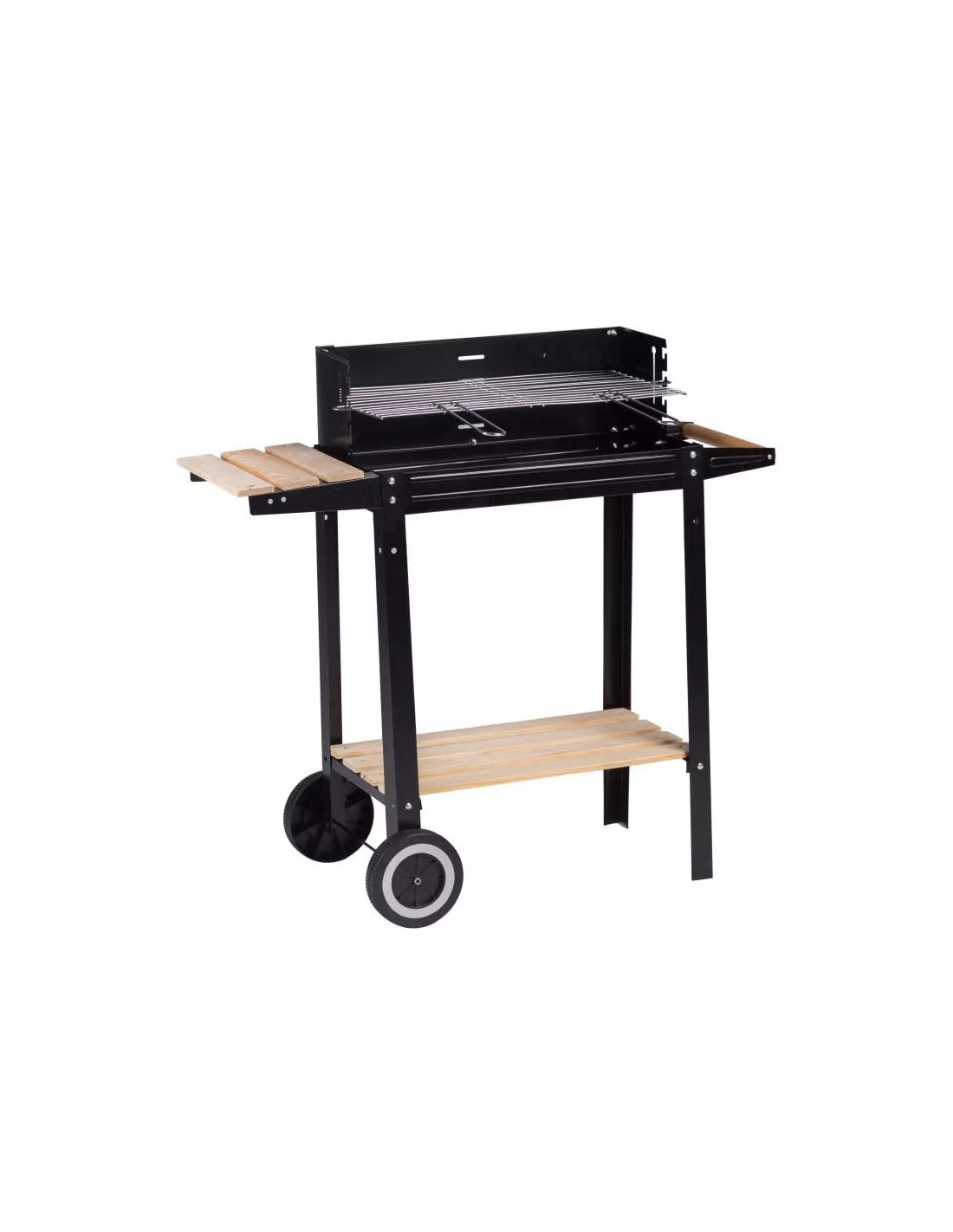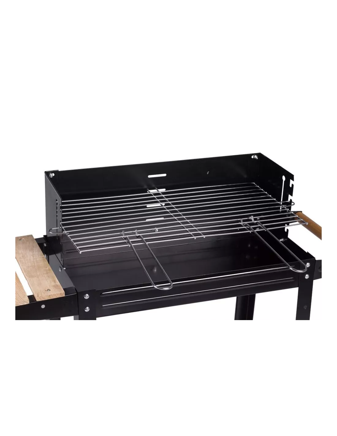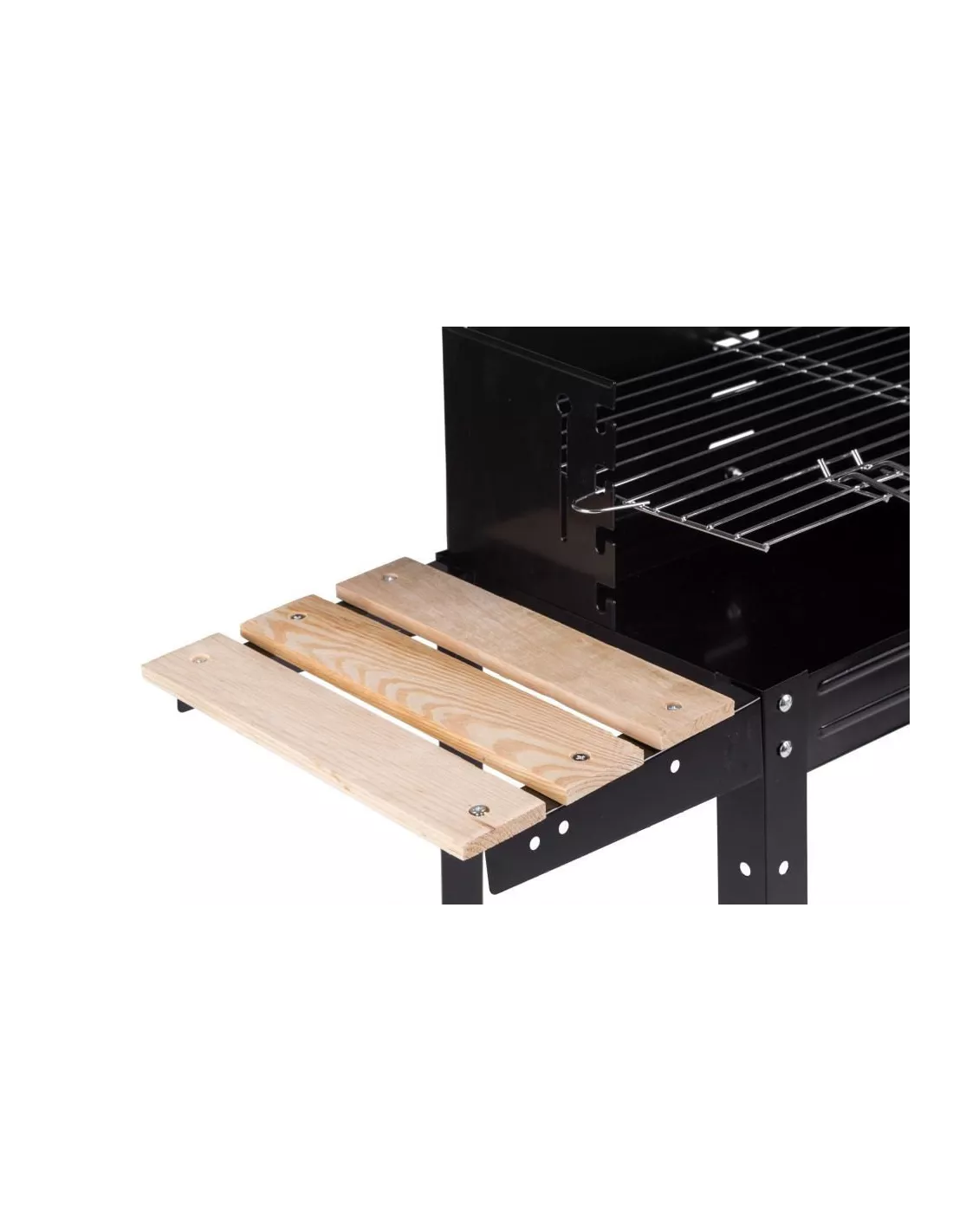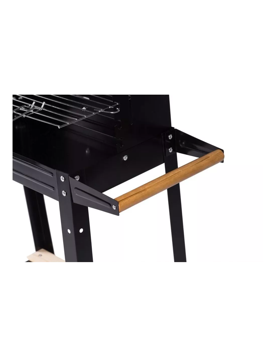 Model G5 charakteryzuje się dużym rusztem oraz funkcjonalnymi półkami. Wykonane z drewnianych listewek umożliwiają odłożenie na nich narzędzi do grillowania lub podpałki czy naczyń. Wyposażony w 2 kółka umożliwia szybkie i łatwe przemieszczanie, bez konieczności podnoszenia całości, pomaga w tym, także rączka - uchwyt. Duży ruszt to przede wszystkim funkcjonalność bo zmieści się na nim więcej jedzenia, a funkcja regulacji wysokości pozwala ustalić szybkość i moc grillowania.