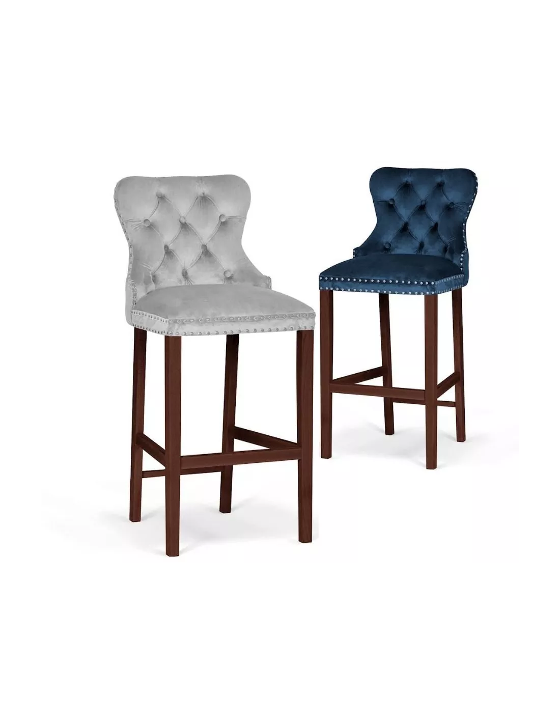HOKER KRZESŁO BAROWE MADAME 60 CM PIKOWANE Z KOŁATKĄ NOGI DREWNO ORZECH (WYBIERZ TKANINĘ)
