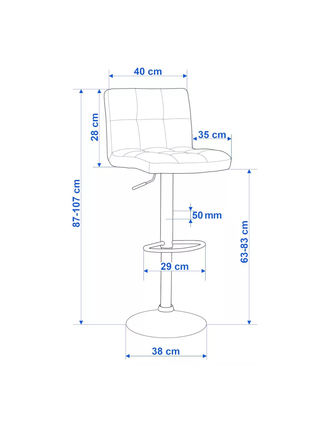 Na wygodę siedzenia w przypadku tego modelu wpływa nie tylko miękkość siedziska ale także wyprofilowane oparcie. Z pewnością chętnie też oprzesz nogi o podnóżek, umocowany do stelaża. Ten dla odmiany pozostaje klasycznie czarny (inaczej niż większość chromowanych), co tylko dodatkowo go wyróżnia. Podstawa w formie stopy to gwarancja stabilności i pewnego siedzenia. W razie potrzeby możesz także swobodnie regulować jego wysokość, by dostosować hoker do wzrostu lub wysokości barowego blatu, stołu czy wyspy kuchennej.