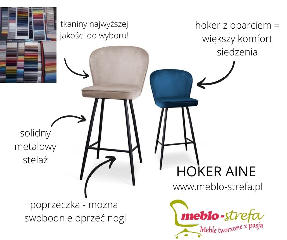 Poszukując odpowiedniego hokera zarówno do wnętrz domowych jak i usługowych, warto postawić na komfort. Wiedzą to wszyscy, lubiący "posiedzieć na wysokości". Miękkie siedzisko z oparciem dają w tym przypadku wygodę krzesła, przy zachowaniu estetyki i funkcjonalności hokera. Model Aine świetnie sprawdzi się zatem w kuchni przy podwyższonym blacie, przy barze, w recepcji... Będąc nie tylko meblem do siedzenia ale także istotnym elementem wystroju wnętrza.