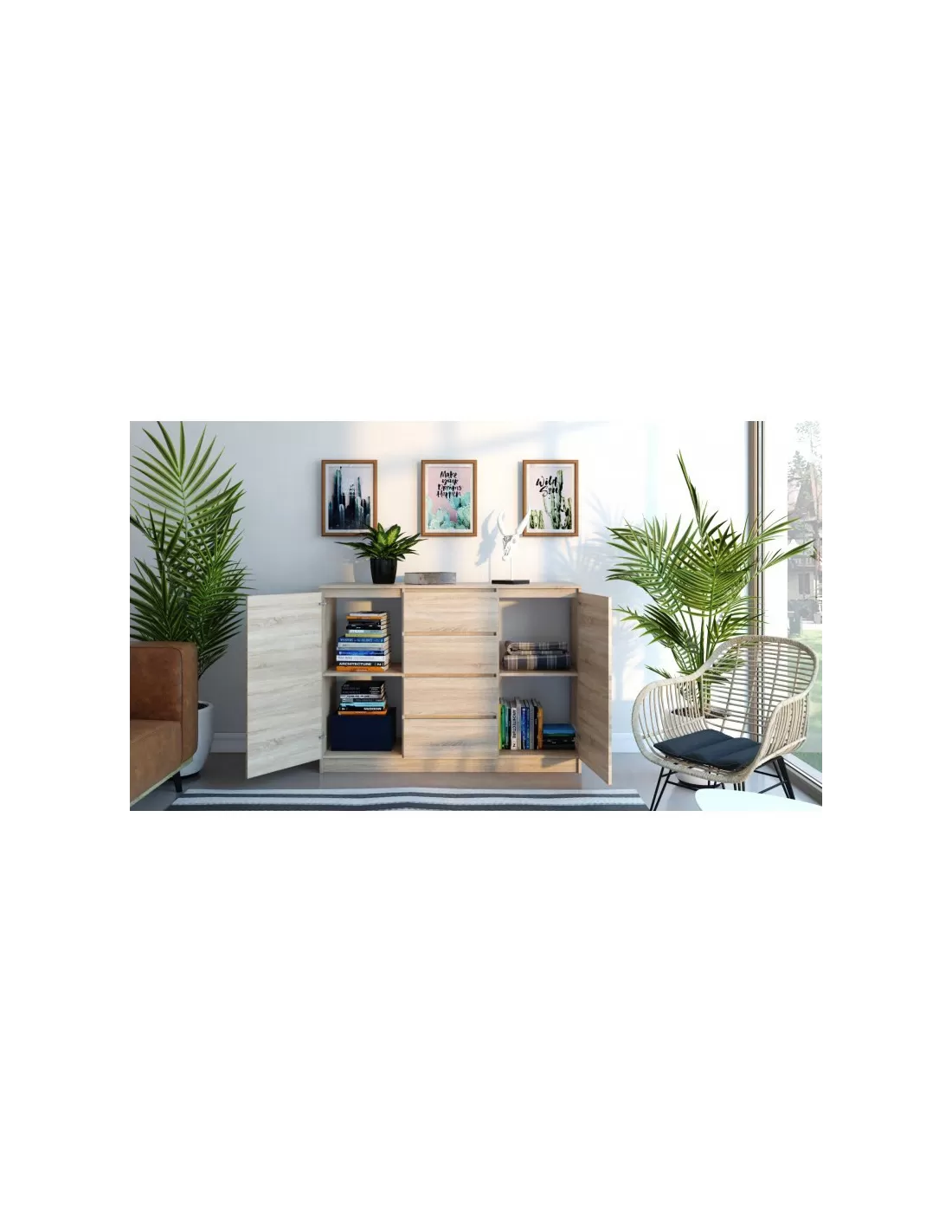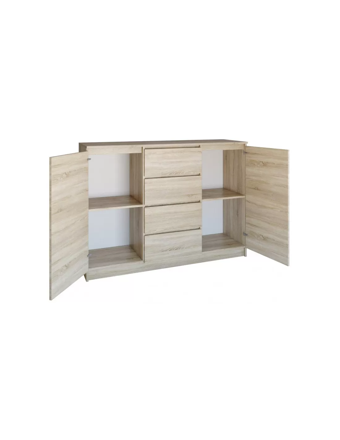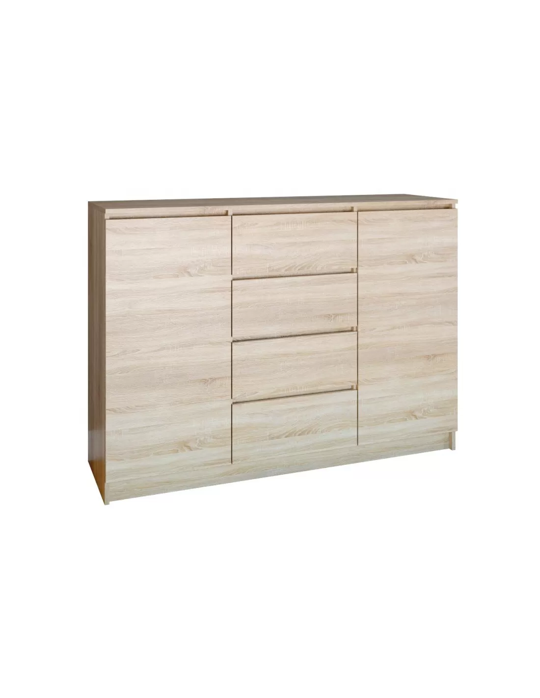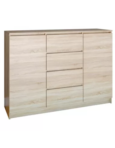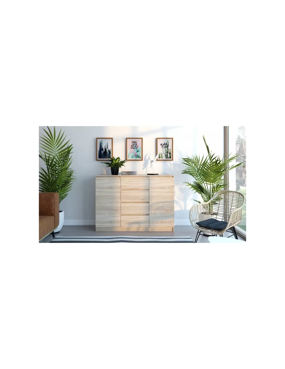 Komoda 2D4S jest idealna dla każdego! A dlaczego? Powodów jest kilka, po pierwsze jej minimalistyczny, nowoczesny design świetnie wpasuje się w niemalże każde pomieszczenie, czy to będzie sypialnia w stylu skandynawskim, czy nowoczesny salon. Po drugie kolor, sonoma nie tylko świetnie komponuje się z każdym innym ale też jest zawsze elegancki i ponadczasowy. Nie musisz więc, że po kilku latach użytkowania obawiać się, wyjdzie z mody. Po trzecie to duża funkcjonalność. W tym niewielkim na pozór meblu, za 2 frontami udało się zmieścić 4 pojemne półki oraz 4 praktyczne szuflady na prowadnicach rolkowych z dożywotnią gwarancją! Zmieścisz w niej, więc naprawdę dużo rzeczy, począwszy od ubrań przez książki, dokumenty a skończywszy na "przydasiach" wszelkiego rodzaju. Kolejna zaleta tej białej komody to wysoka jakość wykonania przez polskiego producenta, o czym nich świadczy chociażby zabezpieczenie obrzeży tworzywem PCV, czy grubość płyty 16 mm. Zamów już dziś i ciesz się funkcjonalnym, estetycznym meblem przez lata!