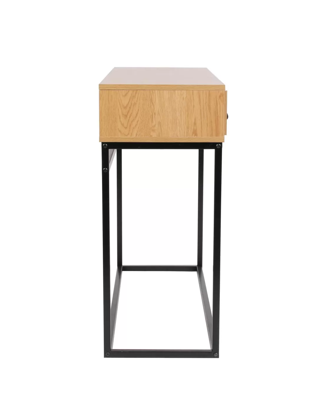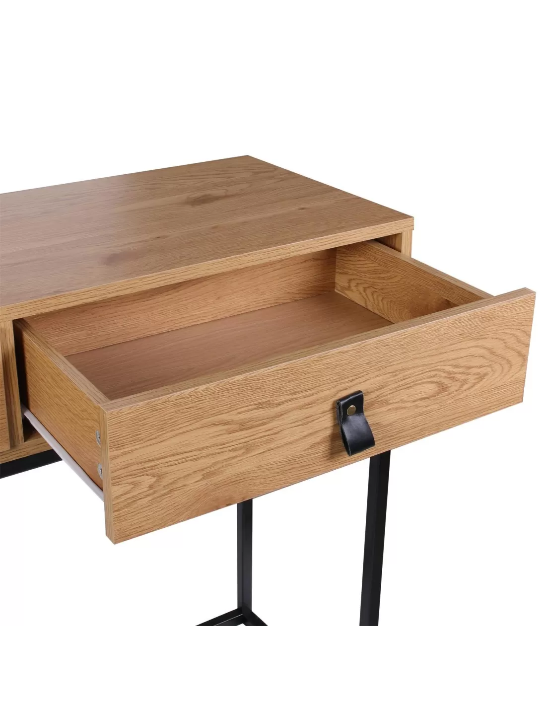 Poszukując mebli, które będą stanowiły doskonały element wystroju wnętrza, warto postawić na nietuzinkowy design. Poznaj model z serii Abbott - konsola, która idealnie wpisze się nie tylko w nowoczesne ale także minimalistyczne i loftowe wnętrza. Piękna, funkcjonalna komoda w kolorze zlotego dębu, wspiera się na solidnej metalowej podstawie. Połączenie czerni i naturalnego drewna z widocznymi przebiciami, usłojeniem i strukturą tworzy harmonijne zestawienie, które pasować będzie do większości modnych wnętrz.