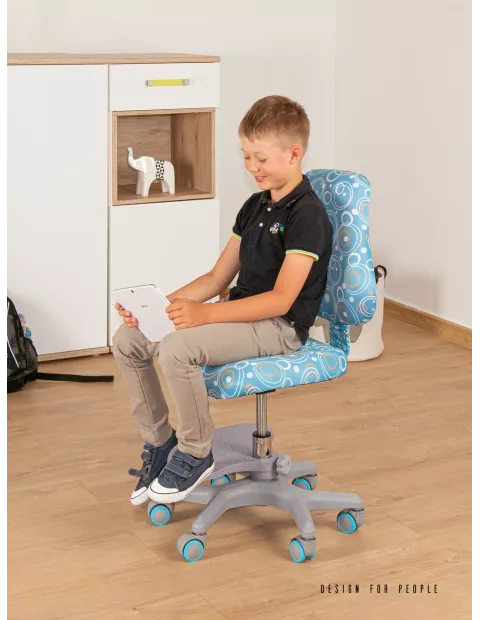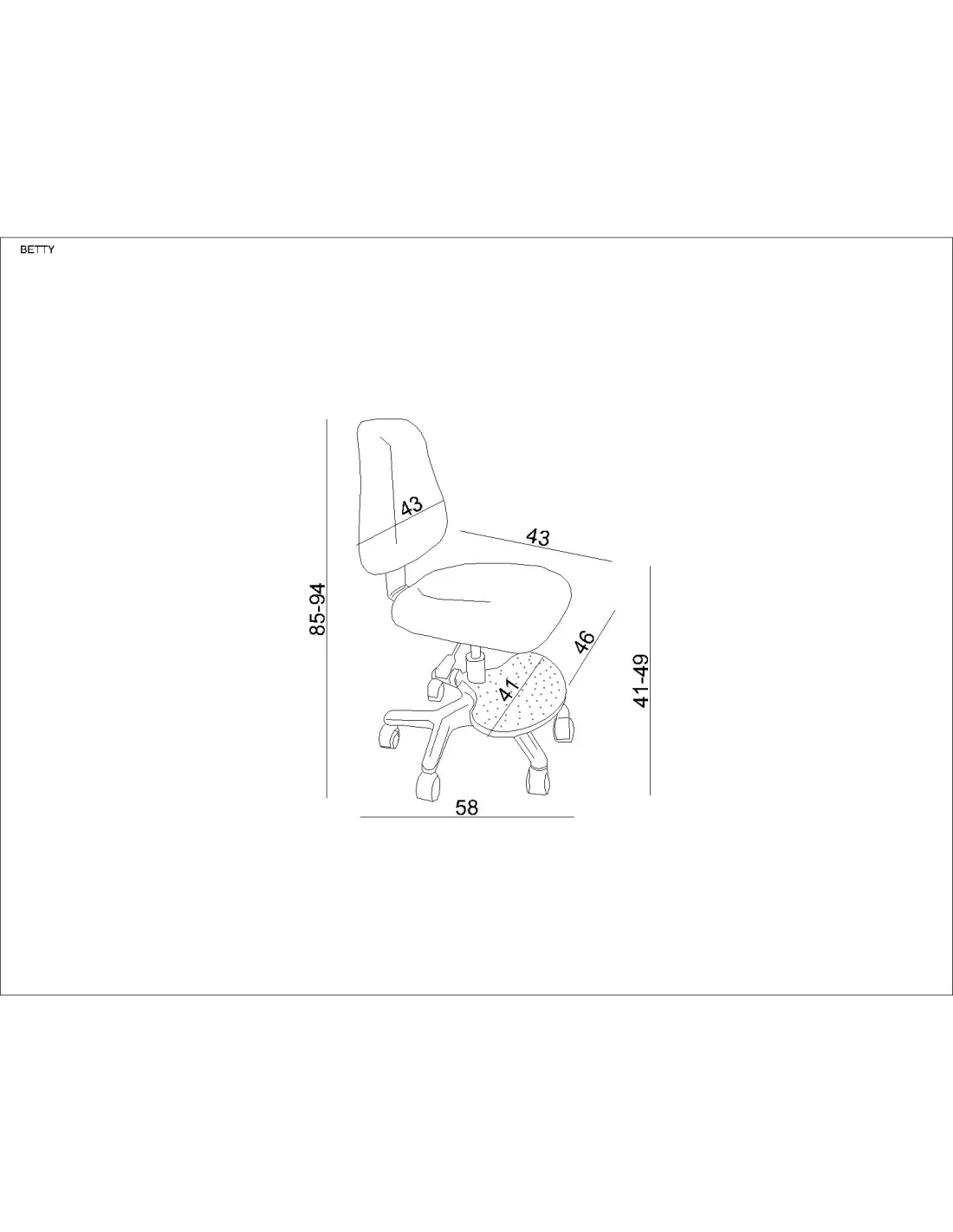 Fotel obrotowy Betty odnajdzie się z pewnością w każdym pokoju dziecka, zarówno chłopca jak i dziewczynki. Dziecięce krzesło obrotowe Betty cechuje się wysoką estetyką i dbałością o detale wykonania. Wyposażony jest w teleskop pneumatyczny, dzięki któremu można swobodnie regulować wysokość, tak by dopasować ją do wzrostu dziecka. Materiał z jakiego zostało wykonane pokrycie oparcie i siedziska to tkanina materiałowa wysokiej jakości - gwarantuje ona swobodny przepływ powietrza między oparciem a pleckami dziecka.