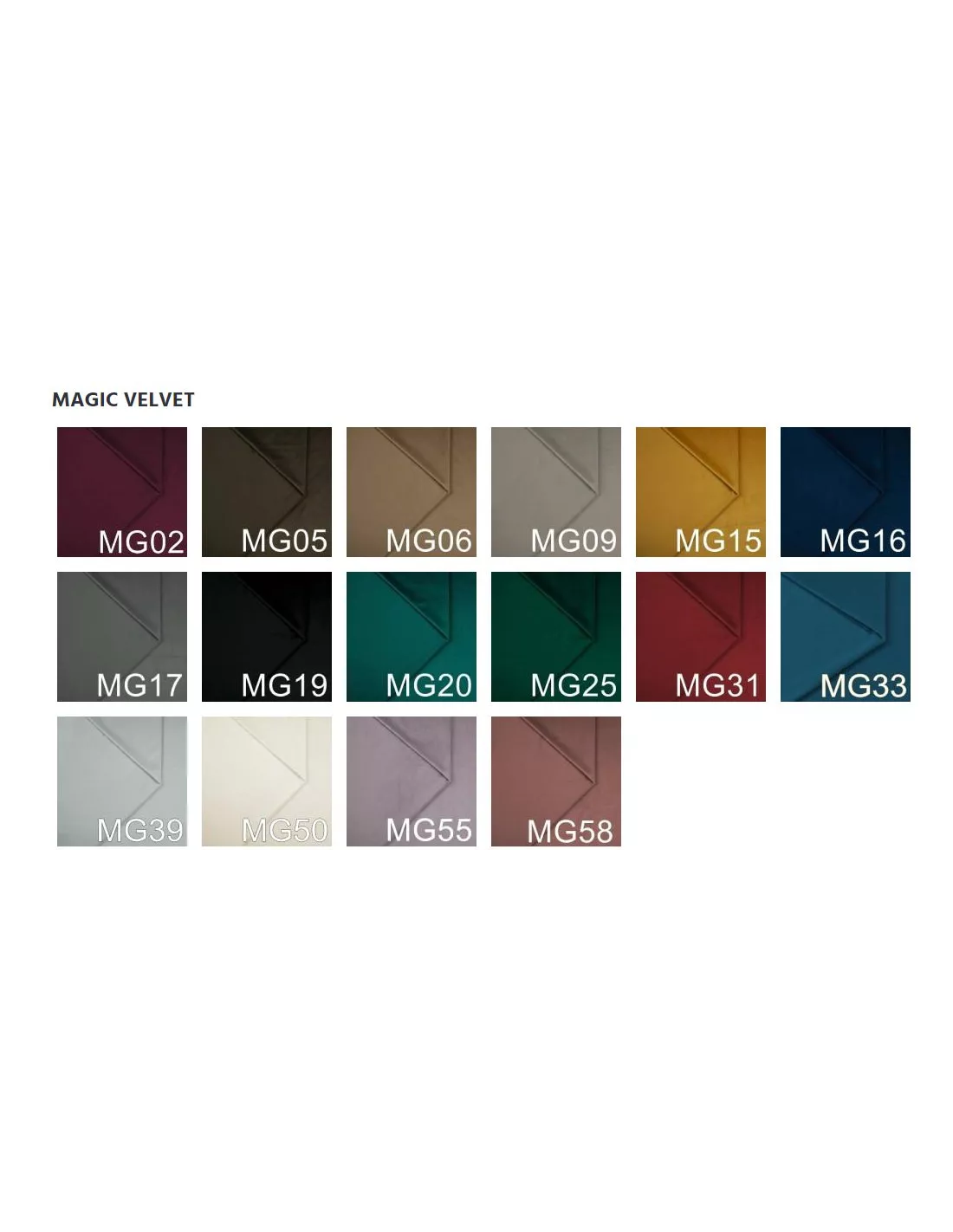 Tkanina użyta do tapicerowania krzesła to Magic Velvet lub Bluvel - jest to tkanina najwyższej jakości o wzmocnionej odporności na przetarcia i zarysowania i mechacenie. Co więcej, ograniczona zdolność wchłaniania przez nią cieczy sprawia, że obejdzie się bez plam. Powierzchnia "odpycha" płyny, nie pozwalając na ich wsiąknięcie. Ten specyficzny rodzaj velvetu jest także odporny na płowienie pod wpływem światła. Charakteryzuje się także ciekawym efektem cieniowania - gęste runo pod wpływem dotyku tworzy ciekawe wzory.