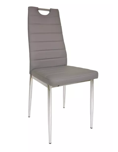 Krzesło DC2-001 B to idealna propozycja do aranżacji salonu, jadalni, a nawet kuchni. Kilka kolorów eko skóry pozwala dobrać odpowiedni do Twojego wnętrza. Mocna, stabilna konstrukcja zapewnia bezpieczne użytkowanie. DC2-001 B to krzesło, które dzięki filigranowym gabarytom nie zajmuje dużo miejsca, stąd jest szczególnie polecane do wnętrz o ograniczonej przestrzeni. Mebel posiada lekko wyprofilowane oparcie z ozdobnymi przeszyciami. Eko skórę na oparciu w razie potrzeby można bezproblemowo zdejmować, wystarczy odpiąć rzep.