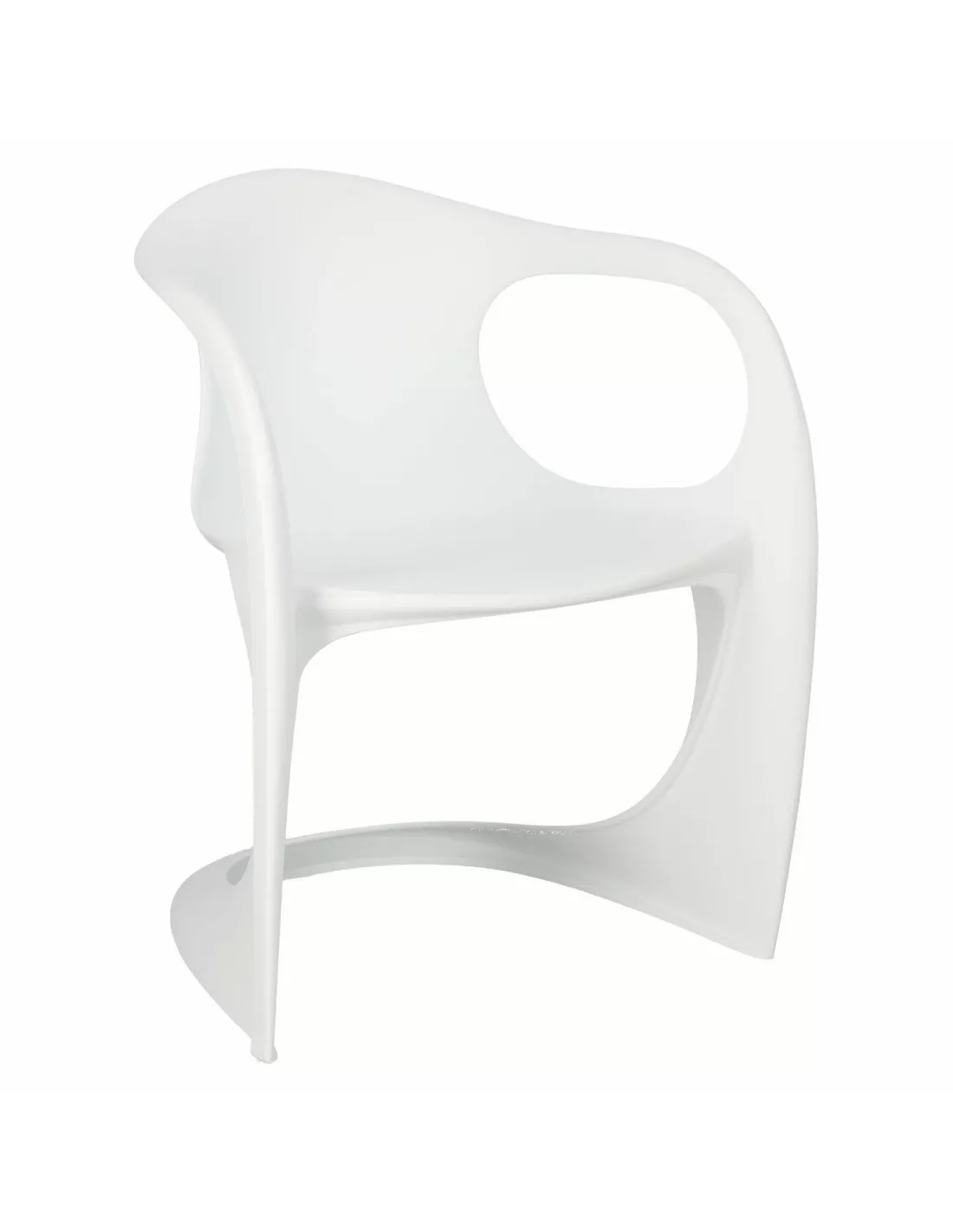 Należy również wspomnieć o niezwykłej odporności i wytrzymałości mebla - a to dzięki zastosowaniu do jego produkcji jednolitego fragmentu tworzywa sztucznego jakim jest polikarbon. Półkolista powierzchnia styku z podłożem gwarantuje stabilność a oparcie wraz z siedziskiem daje duży komfort siedzenia. Poręczne podłokietniki przydadzą się podczas wstawania ale także siedzenia.