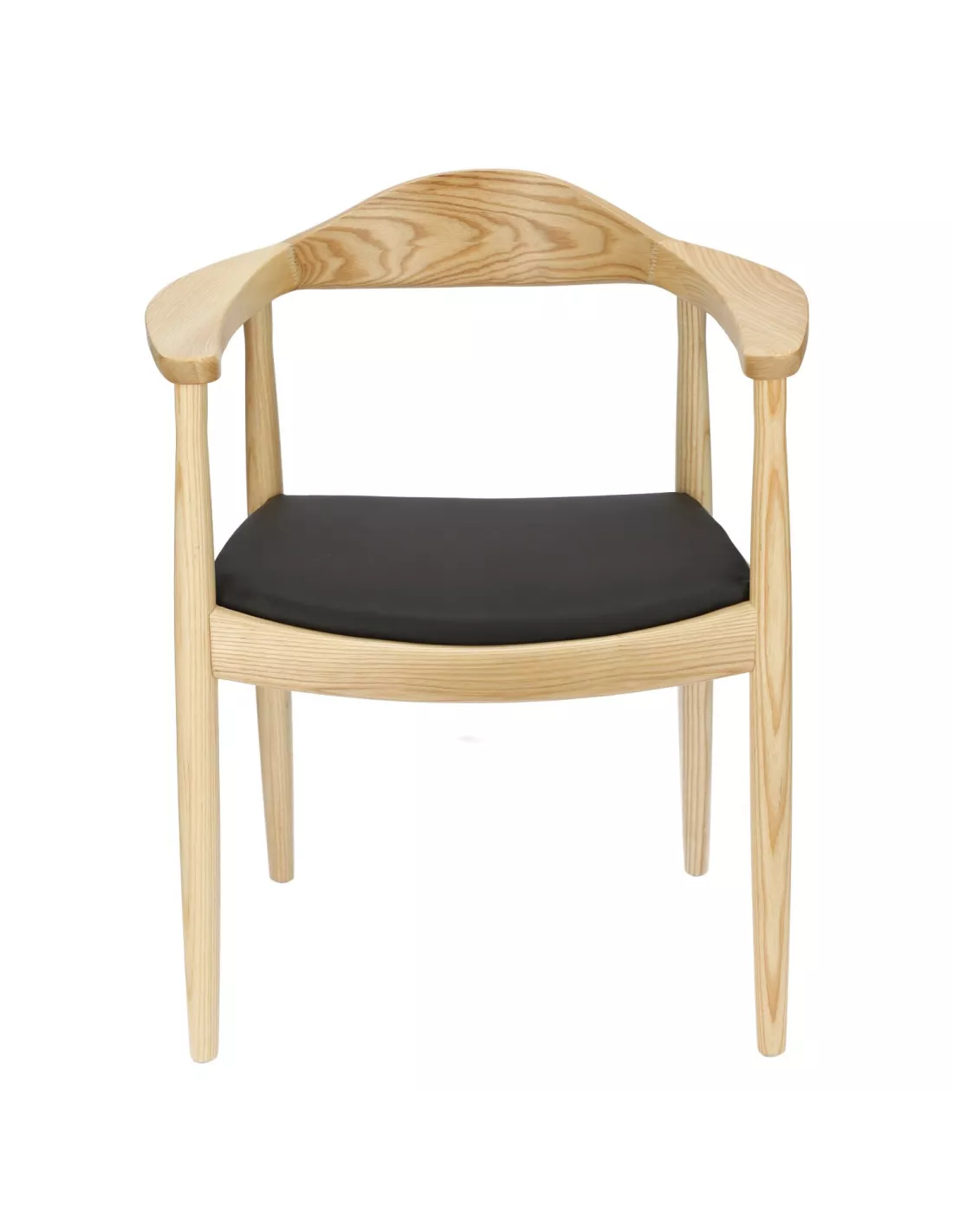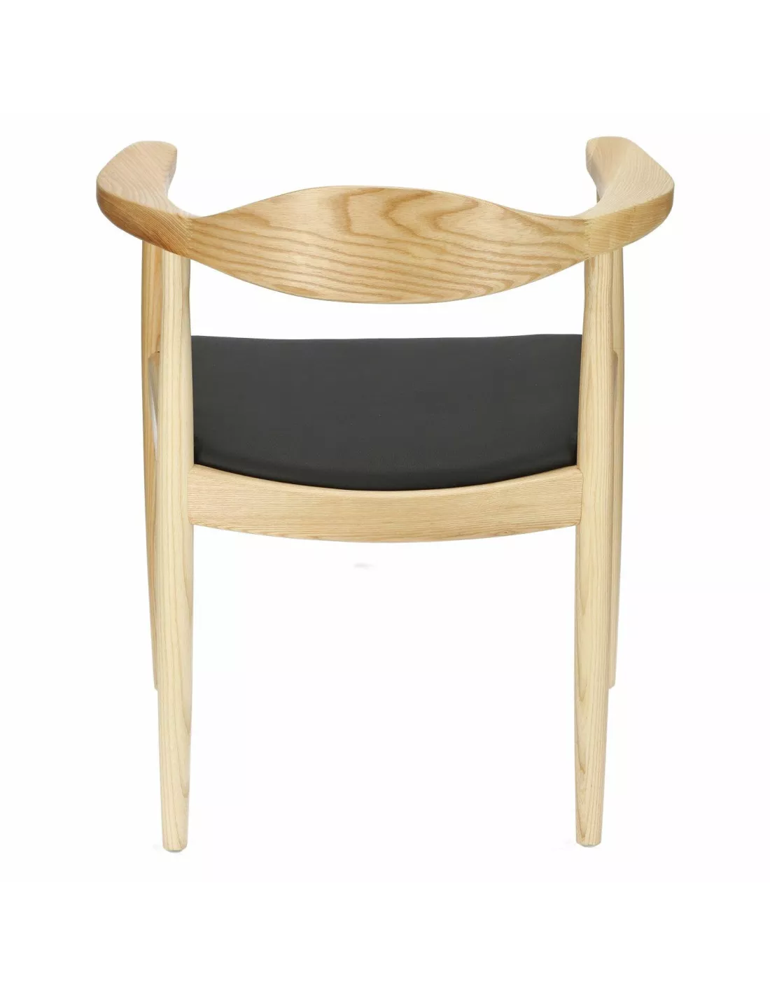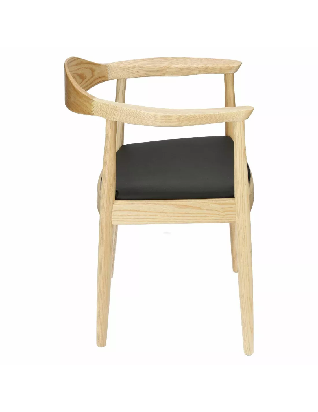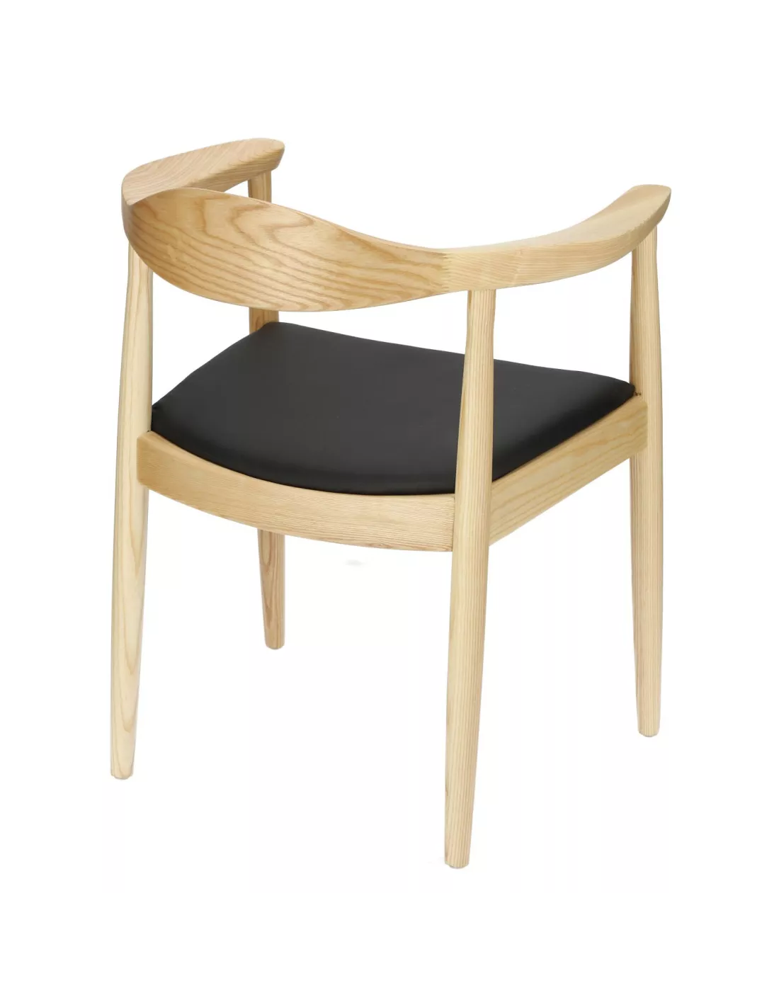 Model President to krzesło, dla wszystkich poszukiwaczy oryginalnych mebli z klasą i... duszą. Krzesło to jest repliką słynnego projektu H.Wagnera, który stał się już legendą. W odświeżonej wersji President wraca jako krzesło drewniane (oferujemy 2 rodzaje wybarwienia do wyboru) z miękkim siedziskiem. Umieszczono w nim gąbkę tapicerowaną skórą sztuczną w czarnym kolorze. Dzięki odpowiedniemu zagłębieniu siedzi się nam nim naprawdę wygodnie. Cała forma krzesła nabiera niesamowitej lekkości i finezji dzięki "skromnemu" oparciu z bardzo dużym prześwitem. Jego półkoliste wyprofilowanie bardzo dobrze przylega do pleców, dobrze je podtrzymując. Dodatkowym udogodnieniem są tutaj podłokietniki. Krzesło to świetnie sprawdzi się w eleganckich, klasycznych pomieszczeniach jak i tych stylizowanych na styl retro czy vintage. Prosta forma krzesła daje duże pole do swobodnej aranżacji.