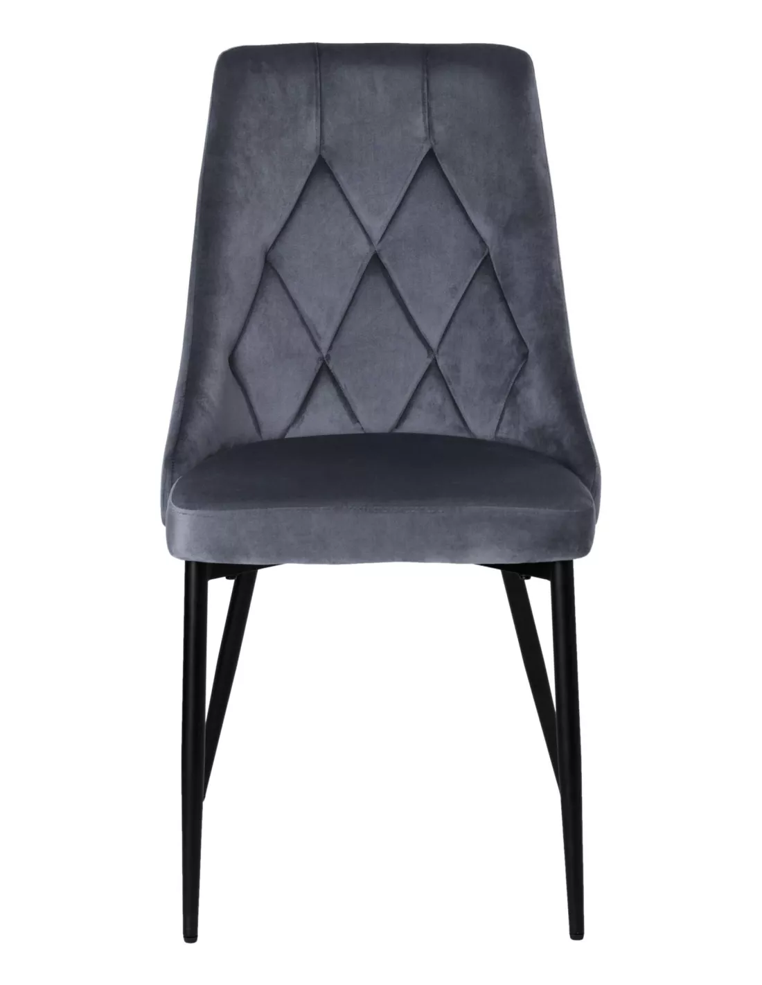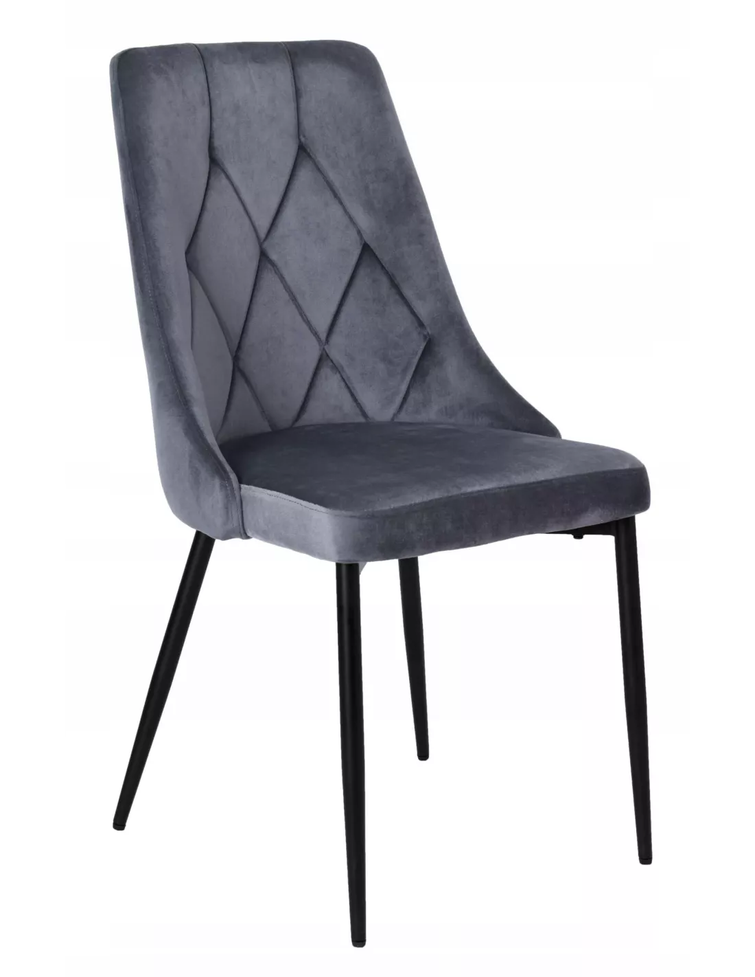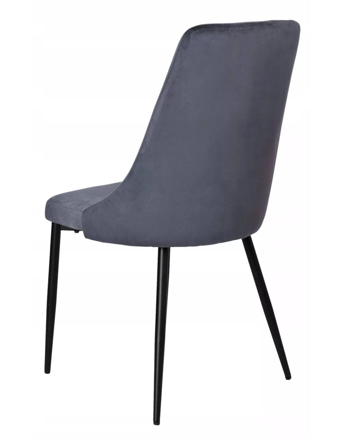 Miękkie siedzisko i wygodne wysokie oparcie pokryte niezwykle miłą w dotyku tkaniną aksamitną daje bardzo przyjemne odczucia dla skóry. Drewniany stelaż siedziska wspiera się na 4 toczonych metalowych nogach w klasycznej matowej czerni. Doskonale komponują się one z modnymi barwami aksamitnej tapicerki. Na końcach nóg umieszczone są prawie niewidoczne zabezpieczenia, chroniące każde podłoże (płytki, panele, parkiet, drewno) przed zarysowaniem.
