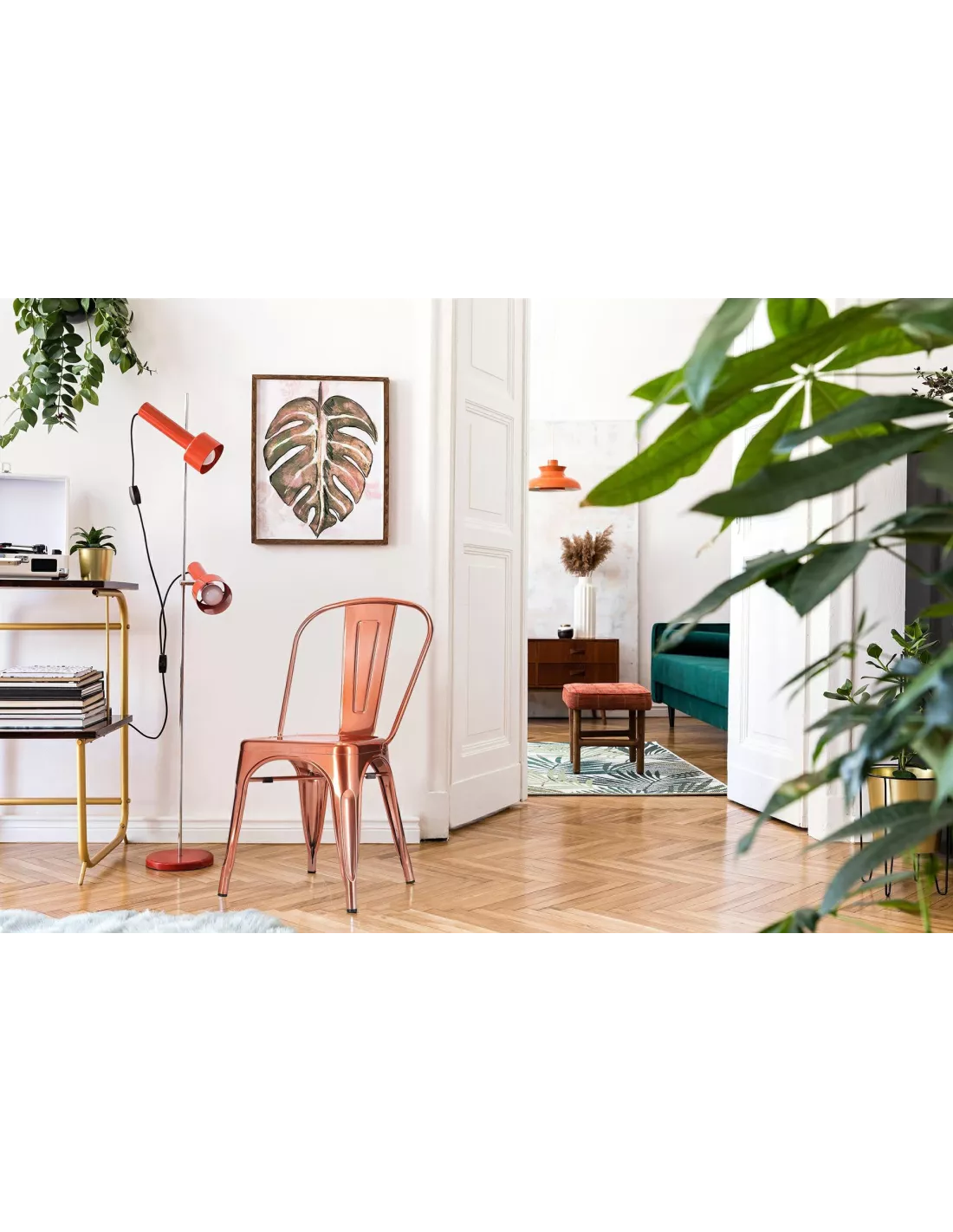 Krzesło Loft Paris to idealna propozycja do wszystkich designerskich loftowych wnętrz ale czy wyłącznie? Absolutnie nie! Znany wszystkim industrialny design tym razem ocieplony został przepięknym odcieniem ciepłej miedzi. Dzięki temu krzesło to zyskało niepowtarzalny charakter, który teraz uświetni także wnętrza boho, nowoczesne, minimalistyczne a nawet glamour. To metalowe krzesło idealnie sprawdzi się nie tylko we wnętrzach domowych i usługowych ale także na zewnątrz w kawiarnianych ogródkach, na tarasach czy patio. Absolutny must-have wszystkich modnych wnętrz!