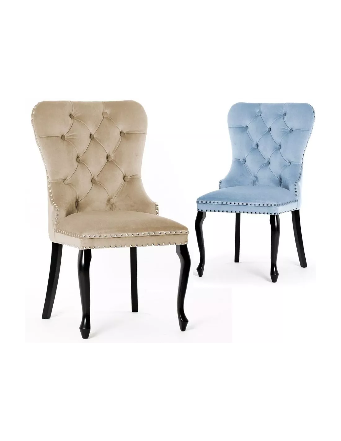 Krzesło Madame - jak sama nazwa wskazuje zostało zaprojektowane z myślą o prawdziwych damach! Cały design przywodzi bowiem na myśl pełne przepychu i klasy - królewskie sale jadalniane czy balowe. O tym tapicerowanym krześle z pewnością można też mówić w przypadku aranżacji pomieszczeń w stylu glamour. Ozdobne pikowanie w stylu chesterfield jak i guziki czy tasiemka pinezkowa - są bowiem w tak eleganckich pomieszczeniach niezwykle pożądane. To aksamitne krzesło zostało poddane zabiegowi nadania lekkości i finezji poprzez uzyskanie delikatnie falowanych krawędzi w oparciu oraz subtelnie wyprofilowanych tylnych nóg w stylu ludwikowskim. Całość prezentuje się naprawdę okazale a ponadczasowy design krzesła Madame - zawsze będzie modny i pożądany, nie musisz więc martwić się, że za jakiś czas wypadnie z kanonu.