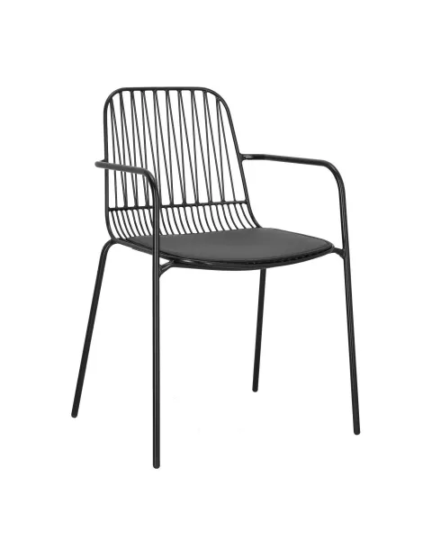 By zwiększyć komfort siedzenia a także nieco "ocieplić" jego loftową naturę - na siedzisko dodano specjalną poduszkę. Tapicerowana eko-skórą nie tylko uprzyjemni siedzenie ale także pozostaje odporna na zabrudzenia. Czarny kolor krzesła idealnie komponuje się z czernią poduszki. Wygodne podłokietniki z pewnością przydadzą się nie tylko podczas siedzenia le także wstawania.