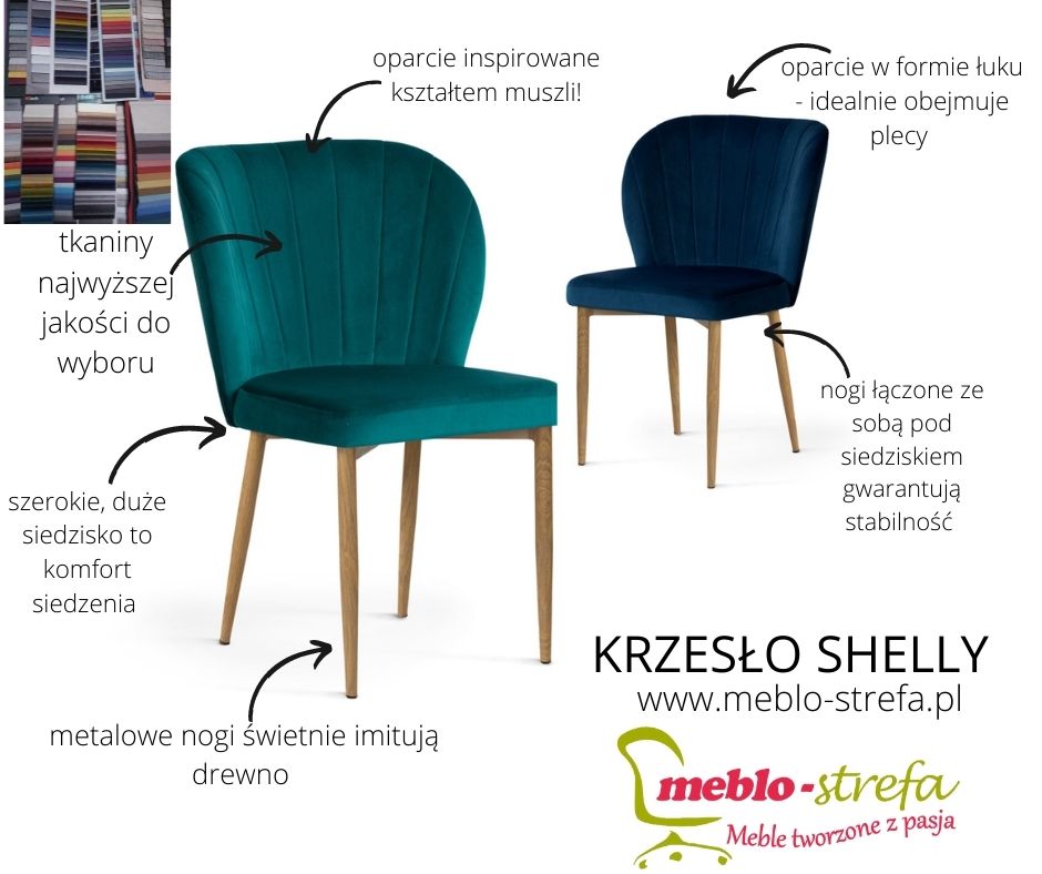 Krzesło, które swoim designem przyciągnie wszystkie spojrzenia? Poznajcie Shelly - model krzesła, które swoim wyglądem nawiązuje do muszli! To tapicerowane krzesło stanowi idealną propozycję do wszystkich niebanalnych wnętrz, począwszy od eleganckich salonów po klimatyczne kawiarnie. Swój designerski wygląd zawdzięcza oparciu - wzorowanemu na oryginalnym kształcie muszli. Wyprofilowane w łuk z pionowymi pasami przypomina muszelkę - stąd też bierze swoją nazwę. Całość (oparcie i siedzisko) tapicerowana wspaniałymi tkaninami. Krzesło tapicerowane Shelly to nie tylko mebel użytkowy ale ze względu na swój wygląd również element wystroju każdego pomieszczenia. Wybierz spośród pięciu kolorystyk i ciesz się tym muszelkowym krzesłem w swoich wnętrzach!