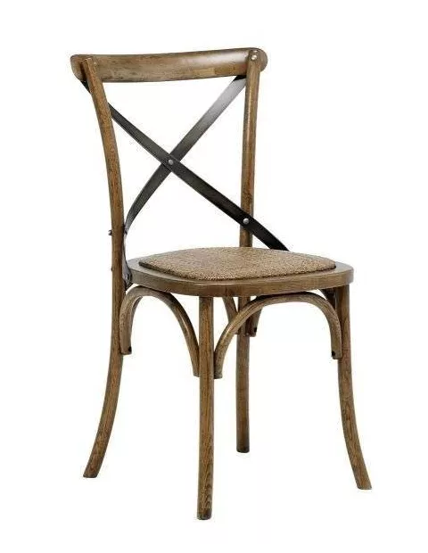 Oparcie z dużym prześwitem nabiera łukowej formy, wzmocnione zostało metalowym krzyżakiem , przypominającym pasy, co dodatkowo uwypukla jego walory estetyczne. Prowansja - z pewnością pozostaje niebanalnym elementem wystroju każdego wnętrza. Idealnie podkreśli jadalnię w stylu vintage czy salon retro. Świetnie uzupełni wystrój prowansalskiej kuchni.