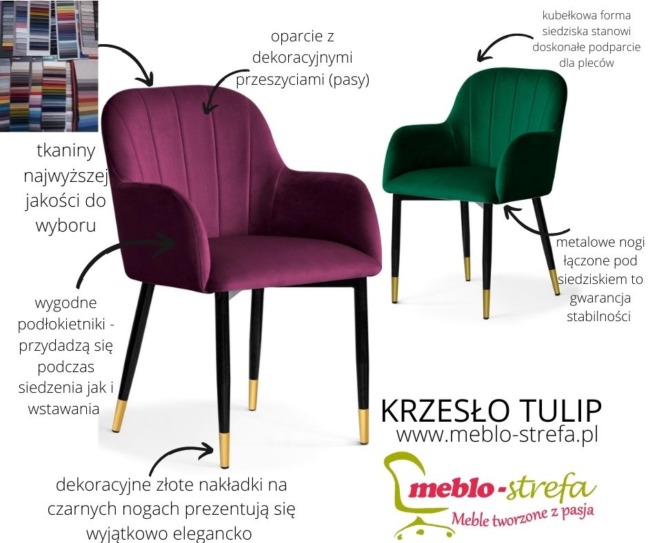 Szukasz krzesła, w którym rozsiądziesz się wygodnie jak w fotelu, a które nie zajmie całej przestrzeni? Tulip to model idealny właśnie dla Ciebie! To tapicerowane krzesło stanowi świetną propozycję do wszystkich niebanalnych wnętrz, począwszy od domowych eleganckich jadalni po klimatyczne kawiarnie. Swój designerski wygląd zawdzięcza bardzo nietypowemu oparciu - finezyjnie przeszywanemu w - co nadało dużo elegancji całej formie. Krzesło tapicerowane Tulip to nie tylko mebel użytkowy ale ze względu na swój wygląd również element wystroju każdego pomieszczenia.