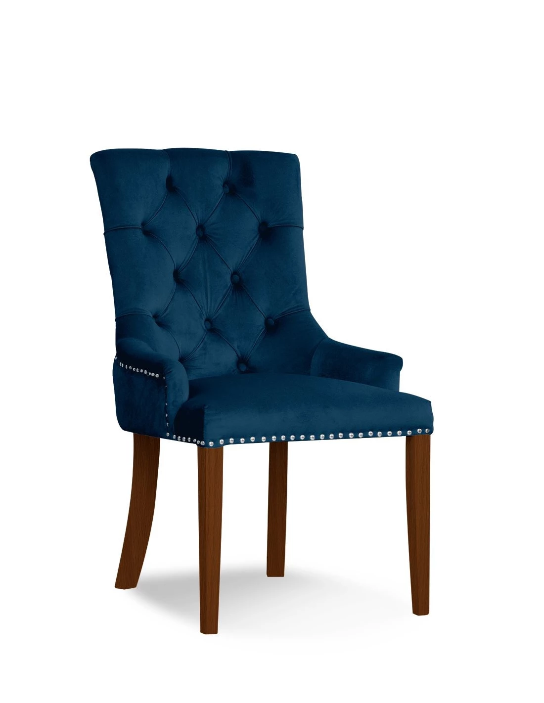 Krzesło August to utrzymany w stylistyce francuskiej oraz glamour krzesło, które z pewnością przypadnie do gustu niejednej osobie. Już na pierwszy rzut oka uwagę przyciąga piękna tapicerka z ozdobnymi pikowaniami i guzikami typu chesterfield (oparcie). Jego design przywodzi na myśl zamkowe i pałacowe sale pełne klasy, szyku i elegancji. Dodatkowe zdobienia tworzą: kołatka z tyłu oparcia, tasiemka pinezkowa oraz finezyjnie wyprofilowane nogi. Na krześle August rozsiądziesz się wygodnie niczym na królewskim tronie! August z pewnością wprowadzi we wnętrza klasę i styl godne pałacu.