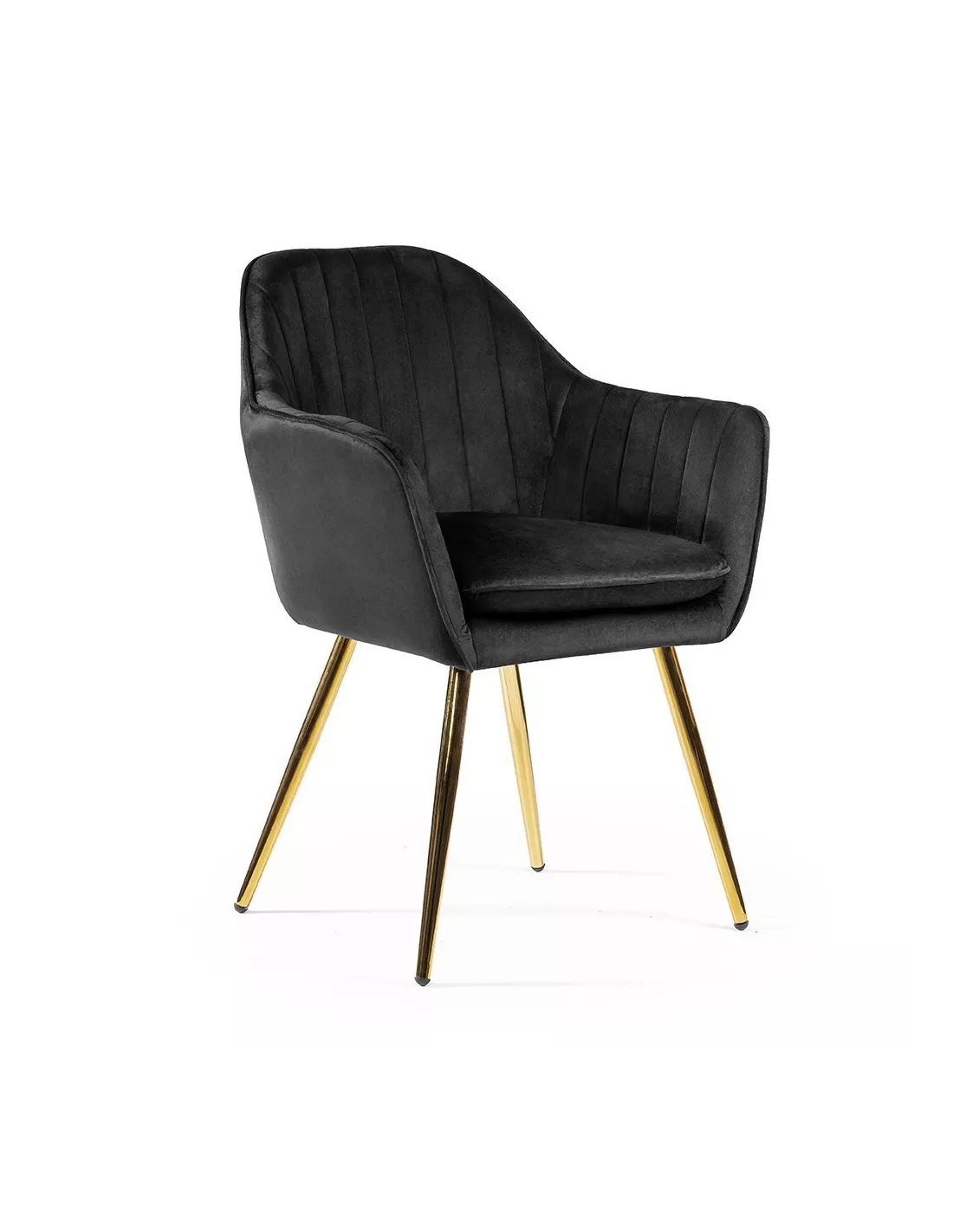 KRZESŁO VELVET W PASY KUBEŁKOWE ROMA ZŁOTE NOGI (CZARNE)