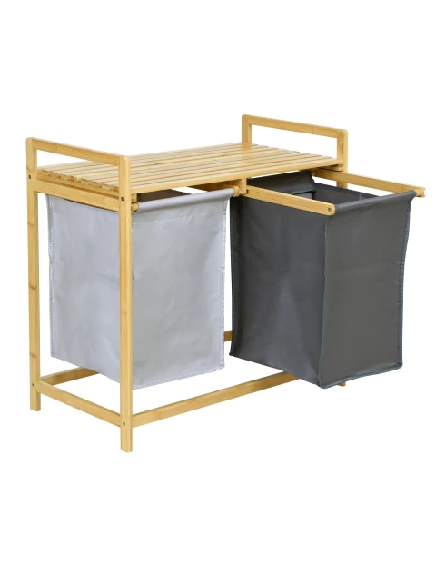 KOSZ BAMBUSOWY NA PRANIE HANOI 2 PODWÓJNY (SZARY)