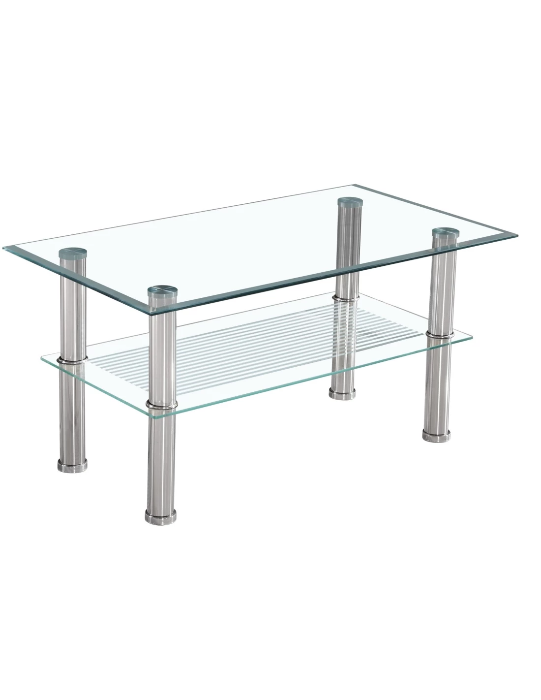 Nowoczesna szklana ława CT 010 z hartowanym grubym blatem (8mm), wykonana z najwyższej jakości produktów. Solidne, metalowe, niklowane nogi. Efektywna zdobiona dolna półka dodaje ławie estetyki i czyni ją praktyczną. Dzięki ponadczasowemu designowi mebel doskonale wpasuje się w przestrzeń salonu, młodzieżowego pokoju czy sypialni. Idealna towarzyszka każdej sofy!