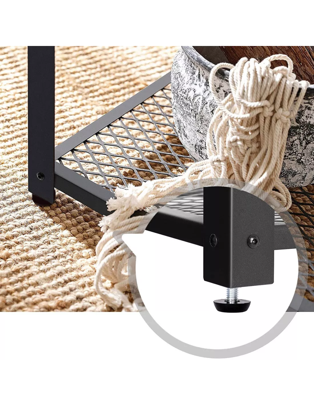 Stelaż stolika to solidna metalowa konstrukcja malowana proszkowo na kolor czarny, natomiast 2 blaty to płyta w kolorze dąb postarzany. Dolna kratkowana półka wykonana z metalu. Materiały te cechują się odpornością na wszelkie uszkodzenia mechaniczne, a wszystko po to, aby można było cieszyć się produktem przez długie lata. Zamów już dzisiaj i wprowadź ten niepowtarzalny loftowy klimat w swoim domu!