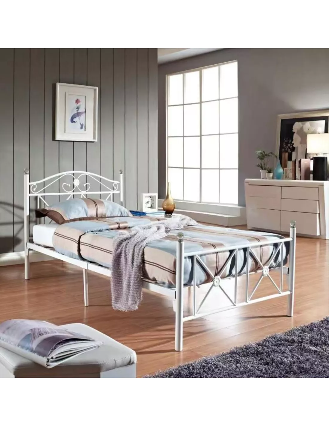 ŁÓŻKO METALOWE MBD8313 BIAŁE ZE STELAŻEM