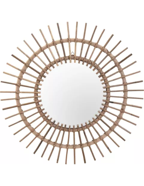 Dekoracyjne lustro Altea to świetny pomysł na uzupełnienie każdego nowoczesnego wnętrza. Posiada przepiękną ramę wykonaną z naturalnej trzciny o różnej długości, nawiązującą swoim kształtem do słonecznych promieni. Ten ciekawy wzór świetnie wpisuje się w najnowsze trendy aranżacji wnętrz, wprowadzając ciepłą jak słońce atmosferę. Lustro doskonale sprawdzi się powieszone nad komodą w salonie, w przedpokoju czy powtórzone w kilku egzemplarzach w sypialni czy łazience. To także świetny pomysł na oryginalny i wyszukany prezent, który z pewnością sprawi radość. Zamów już dzisiaj i przekonaj się jak bardzo można zmienić dom detalami!