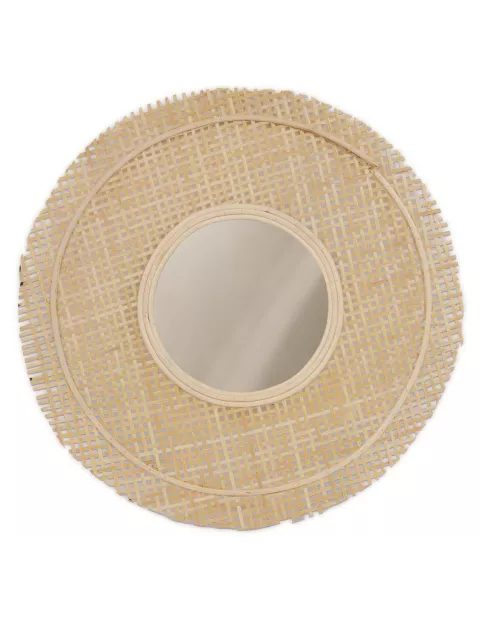 Dekoracyjne lustro Anafi to świetny pomysł na uzupełnienie każdego nowoczesnego wnętrza. Posiada przepiękną ramę wykonaną z naturalnej wikliny , nawiązującą swoim kształtem do mandali. Ten ciekawy wzór świetnie wpisuje się w najnowsze trendy aranżacji wnętrz, wprowadzając przyjemną atmosferę.