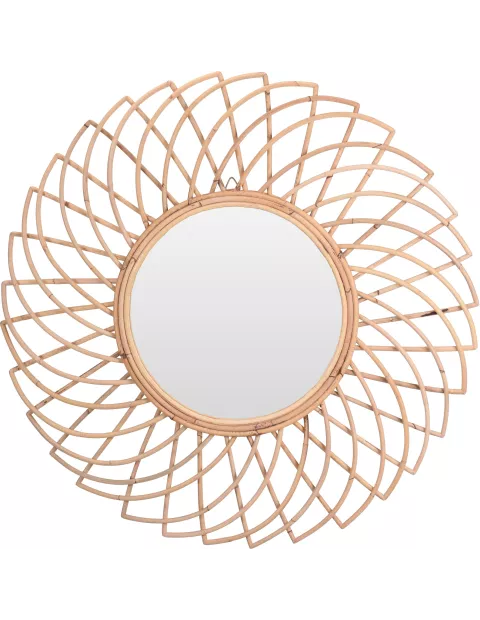 Dekoracyjne lustro Burgos to świetny pomysł na uzupełnienie każdego nowoczesnego wnętrza. Posiada przepiękną ramę wykonaną z naturalnej trzciny o różnej długości, nawiązującą swoim kształtem do przepięknej rozety. Ten ciekawy wzór świetnie wpisuje się w najnowsze trendy aranżacji wnętrz, wprowadzając ciepłą jak słońce atmosferę. Lustro doskonale sprawdzi się powieszone nad komodą w salonie, w przedpokoju czy powtórzone w kilku egzemplarzach w sypialni czy łazience. To także świetny pomysł na oryginalny i wyszukany prezent, który z pewnością sprawi radość. Zamów już dzisiaj i przekonaj się jak bardzo można zmienić dom detalami!