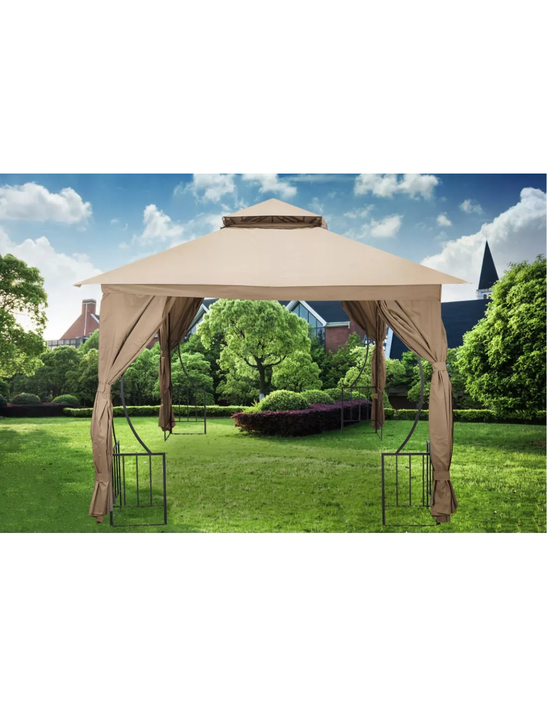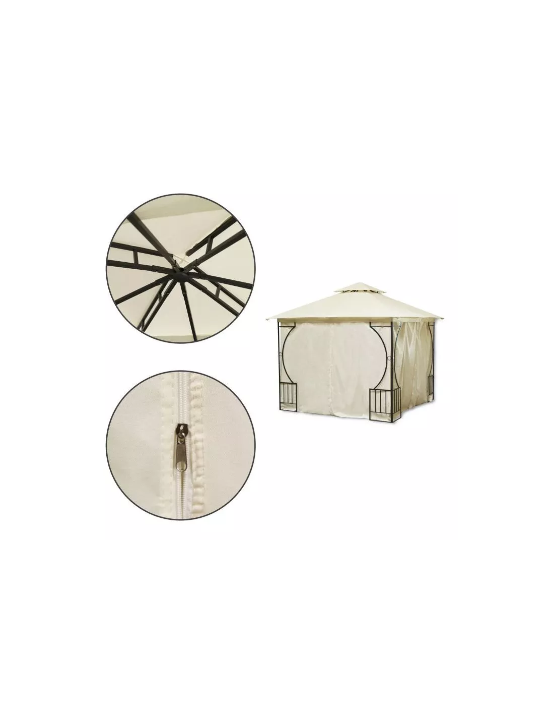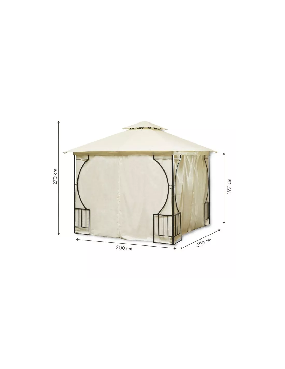 Cała konstrukcja została wzmocniona, metalowymi elementami, by zapewnić maximum stabilności i solidności konstrukcji nośnej. Dzięki temu pawilon nie przewraca się i nie wygina. Podwójny dach chroni od nadmiaru słońca i deszczu, zapewniając przy tym doskonałą wentylację. Szybki, prosty montaż, wygoda użytkowania - namiot na letnie wieczory w ogrodzie i wspólne grillowanie.