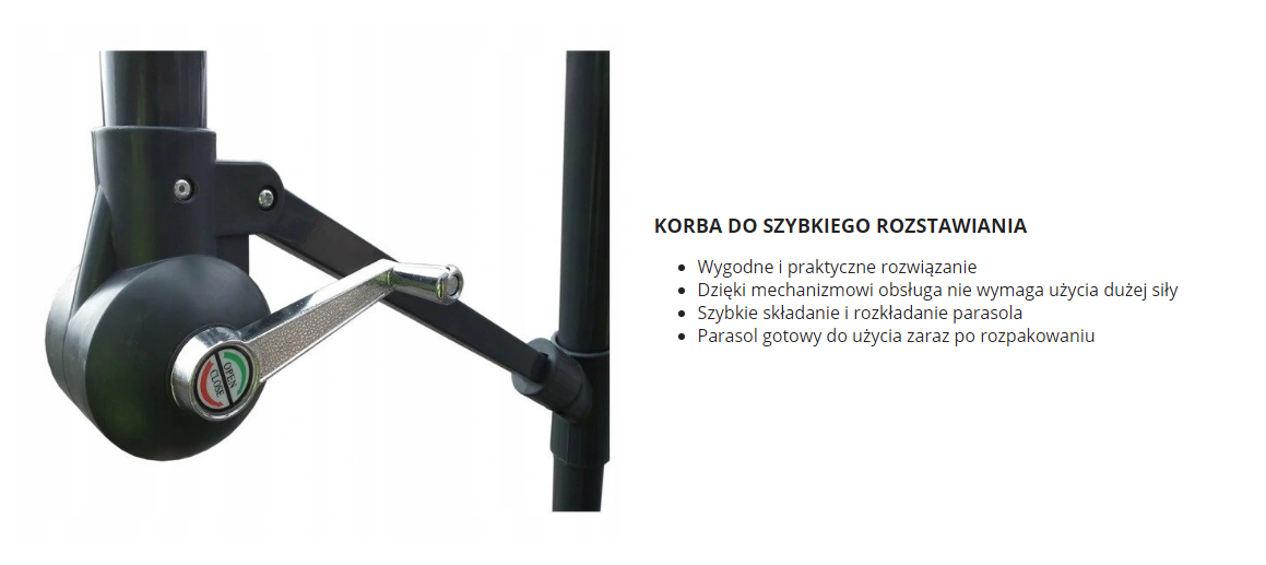Jeśli meble do ogrodu to wśród nich nie może zabraknąć pozycji obowiązkowej jaką jest parasol ogrodowy 350. Duży parasol ogrodowy wolnostojący to przede wszystkim funkcjonalność i wygoda użytkowania. Dzięki temu, że posiada dużą czaszę 300 cm z możliwością regulacji jej pochylenia - z powodzeniem dostosujesz go do swoich potrzeb. Przyjemny cień w każdy upalny dzień - na wyciągnięcie ręki, ale parasol ten przyda się także w deszczowe dni. Posiada nieprzemakalną tkaninę, zatem siedząc pod nim jesteście chronieni od kropel wody. Jego niewątpliwe zalety to także szybkość i łatwość składania/rozkładania, które gwarantuje system korbowy. Solidna i stabilna konstrukcja zapewnia wieloletnie użytkowanie. Podstawa krzyżakowa będzie jeszcze bardziej stabilna, jeśli zostanie odpowiednio dociążona. Design tego parasola ogrodowego jest na tyle uniwersalny, że świetnie odnajdzie się on w każdym ogrodzie, na tarasie, dużym balkonie, patio, działce...