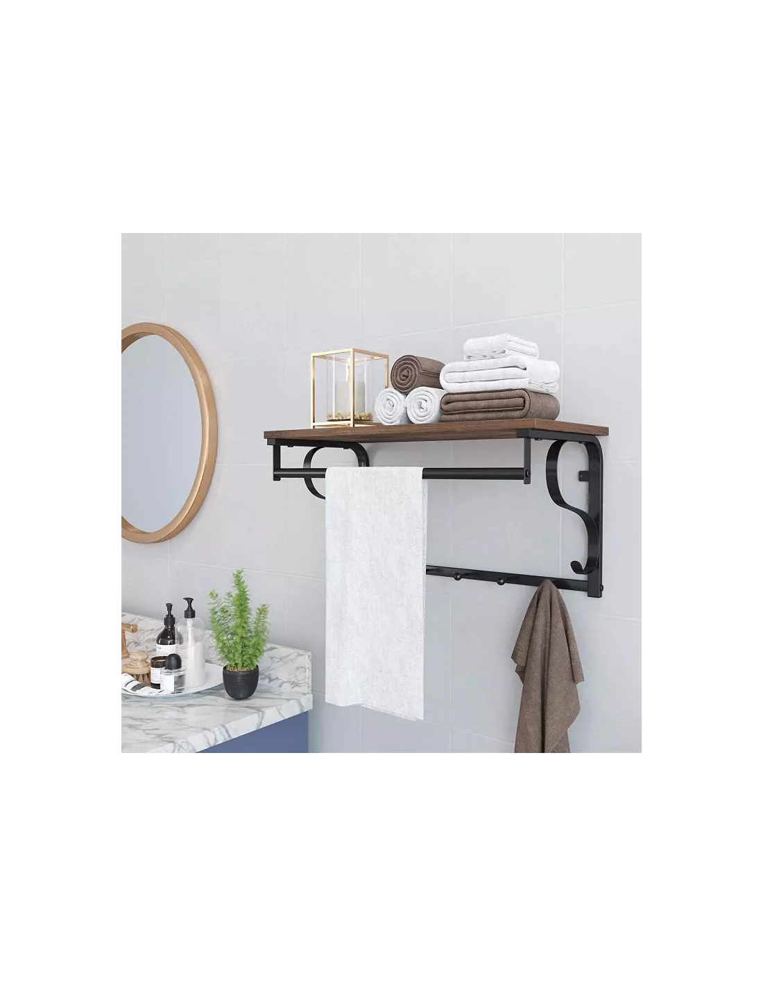Estetyczna i funkcjonalna półka wisząca - to zawsze dobre rozwiązanie, jeśli stawiamy na połączenie praktyczności i designu. Model Loft z pewnością przyda się nie tylko na kosmetyki czy ręczniki w łazience ale także dekoracje i ozdoby w salonie czy sypialni. Idealna także do przedpokoju - metalowy drążek umożliwia powieszenie wieszaków z ubraniami. Dodatkowe haki sprawdzą się, by odwiesić okrycia wierzchnie. Rustykalny brąz w połączeniu z loftowym zacięciem, świetnie sprawdzi się w każdej modnej przestrzeni. Wystarczy powiesić na ścianie.